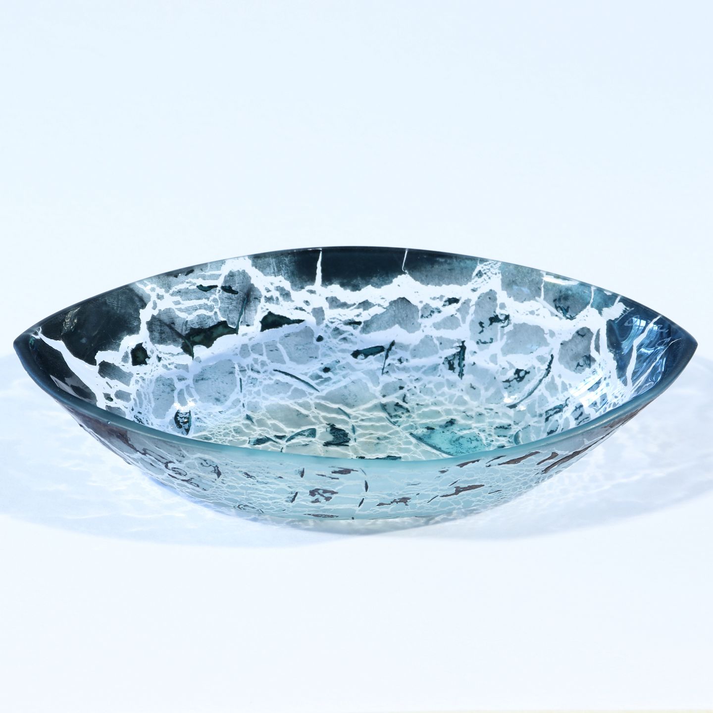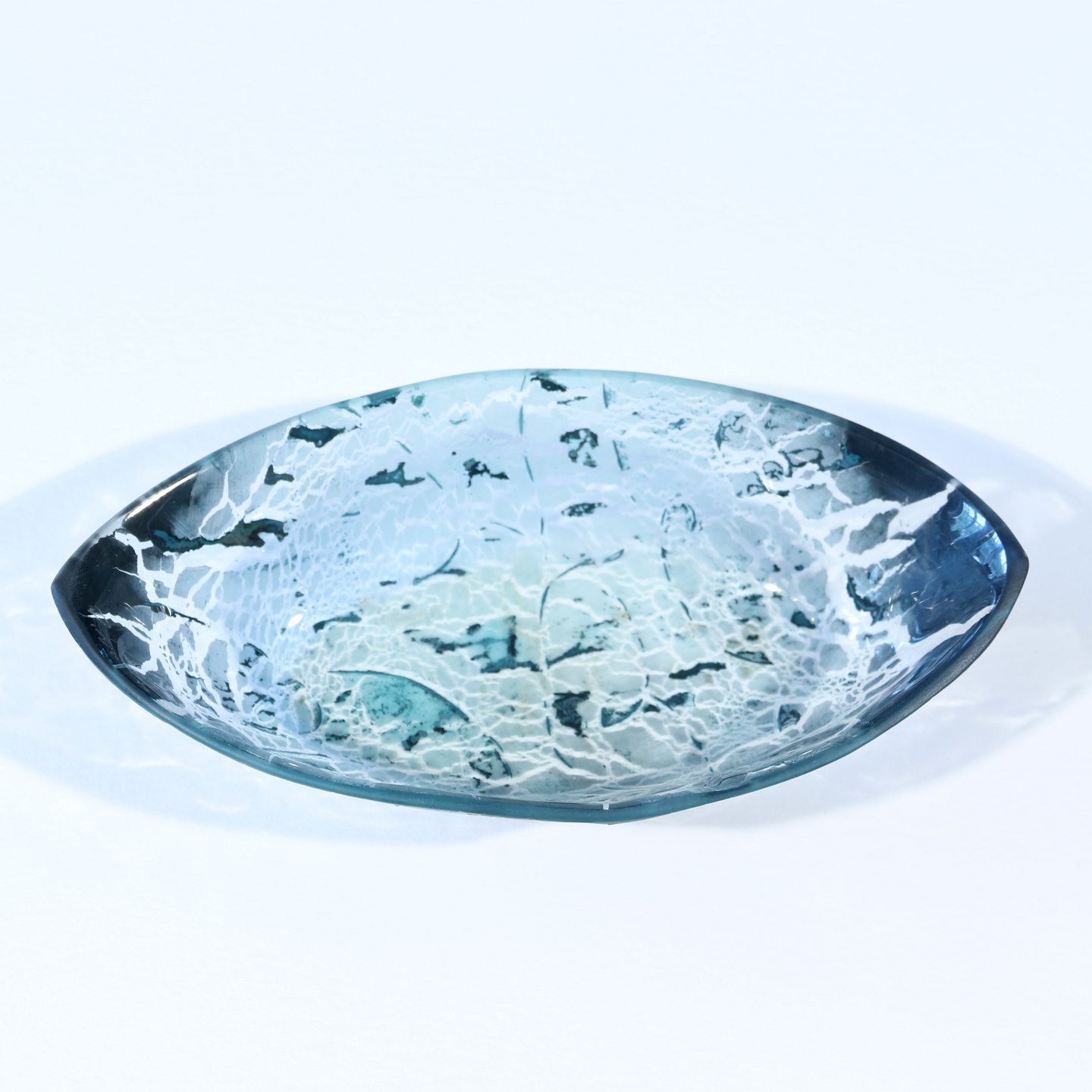 Lille skål i glas sign. PL01, højde 3,5 cm, længde 16 cm, bredde 8,5 cm