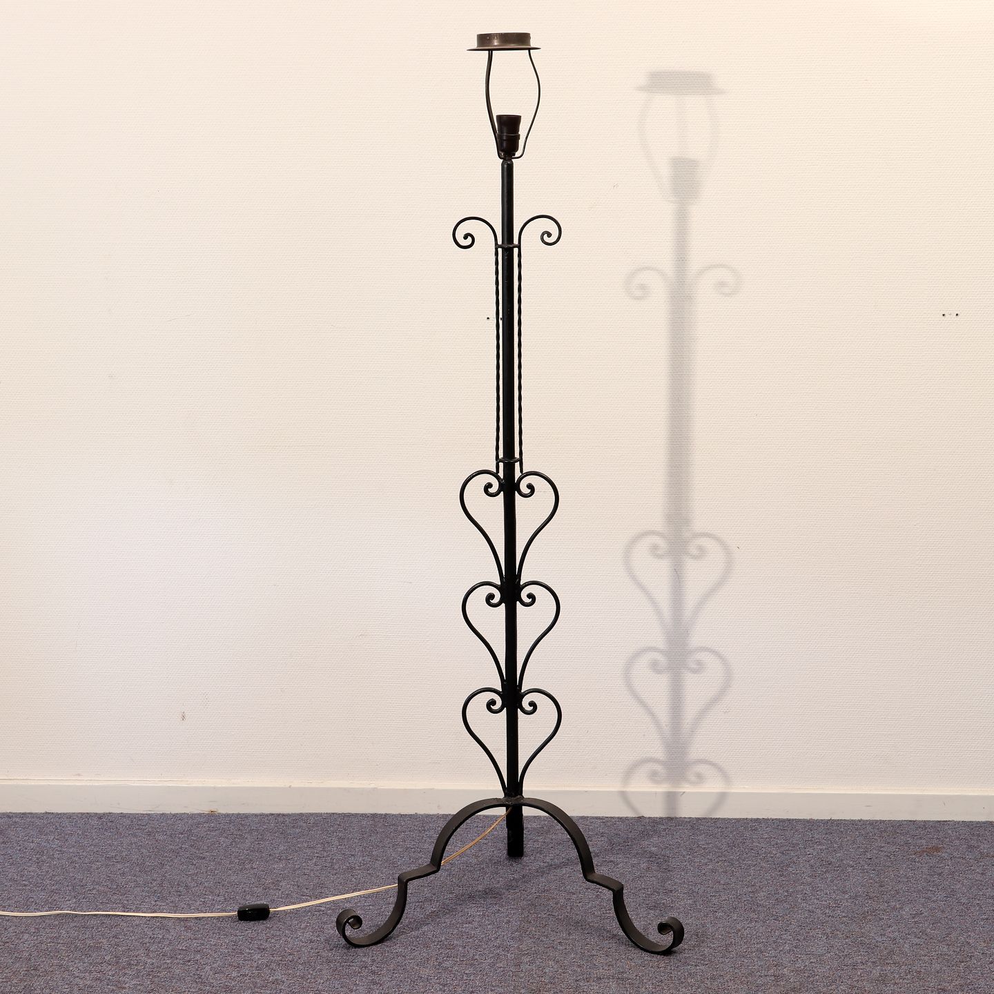 Standerlampe i sortlakeret smedejern, 159 cm høj, 1930-1940