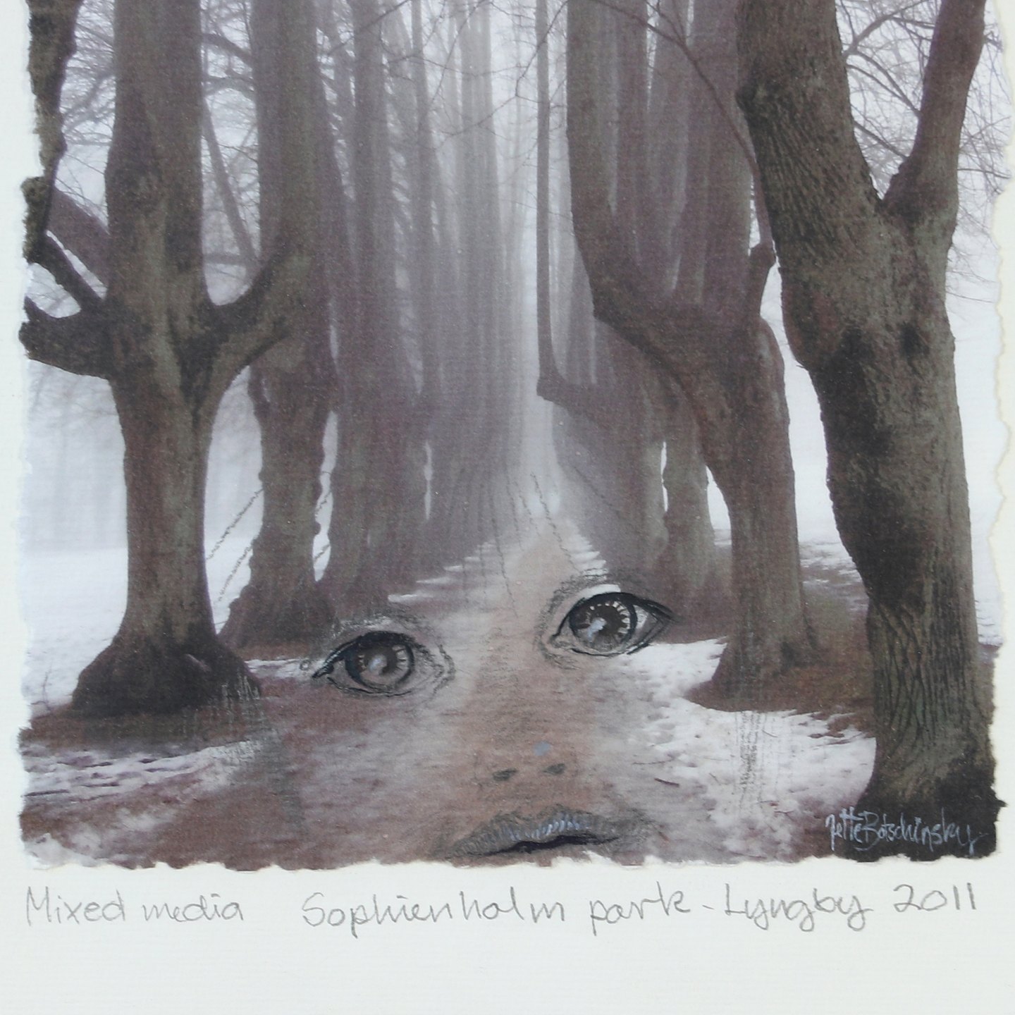 Jette Botschinsky mixed media 'Sophienholm Porte, Lyngby' 2011 signeret samt titel skrevet med blyant rammemål højde 42 cm, bredde 32 cm Emne nummer: 50253