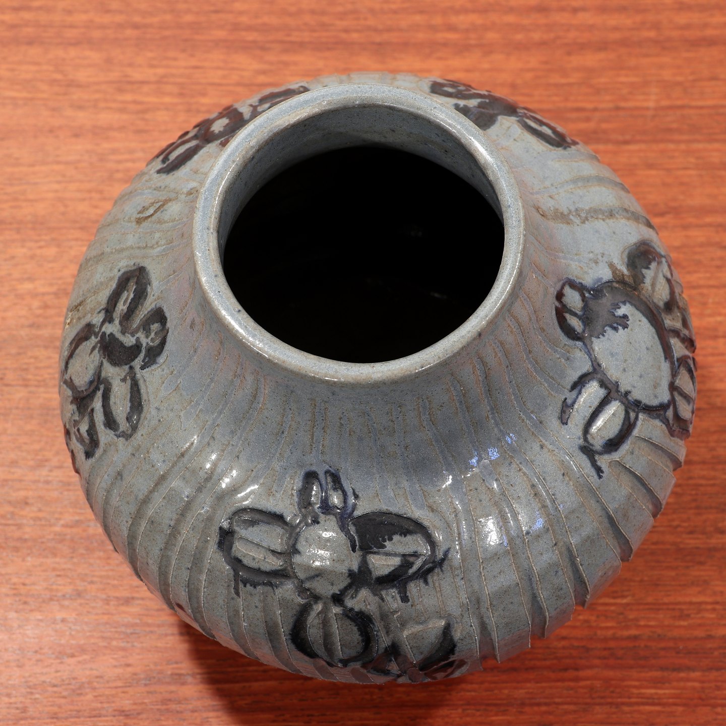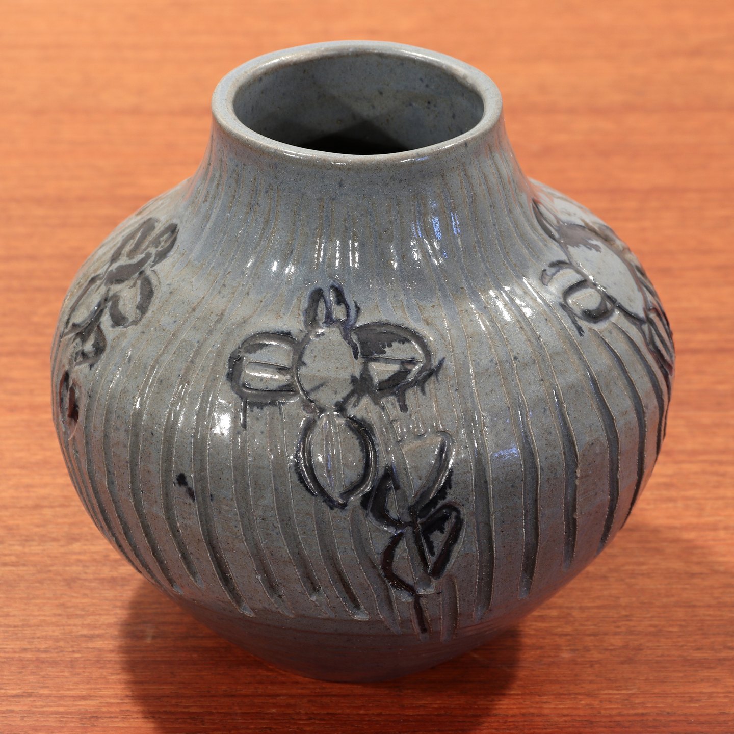 Ukendt keramiker, vase i glaseret stentøj. Højde 20 cm, diameter 20 cm