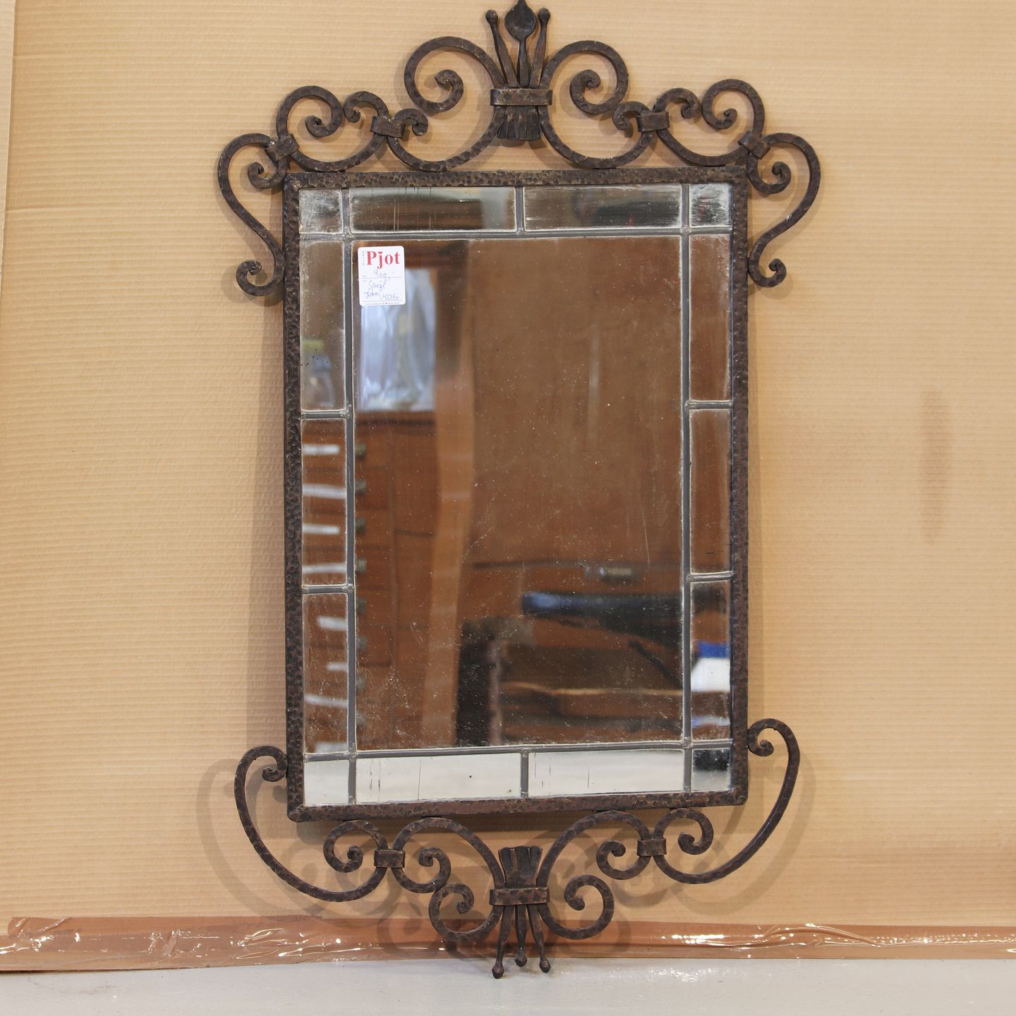 Blyindfattet spejl i smedejernsramme, (HxB 84x53 cm), 1930-1940