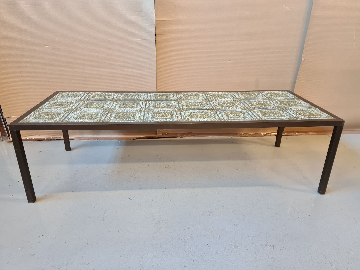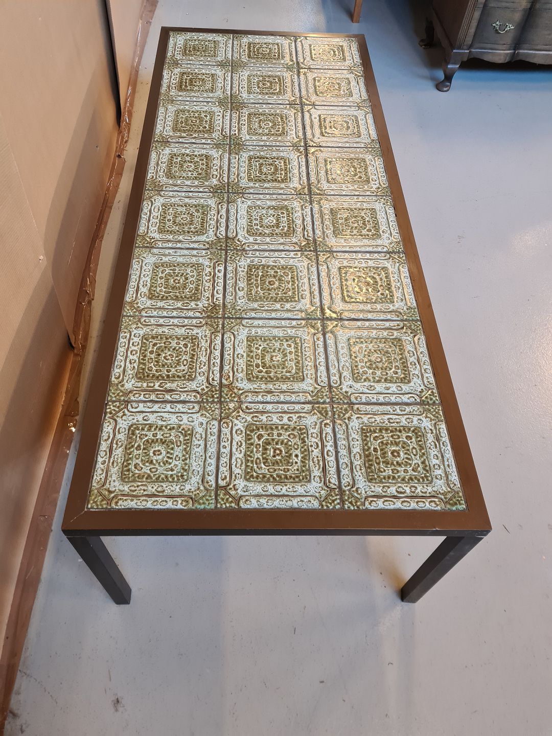 Sofabord i aluminium med kakler og brugsspor.