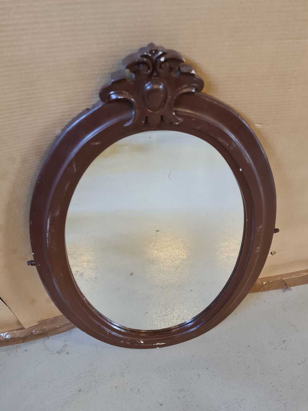 Malet ovalt spejl med div. brugsspor