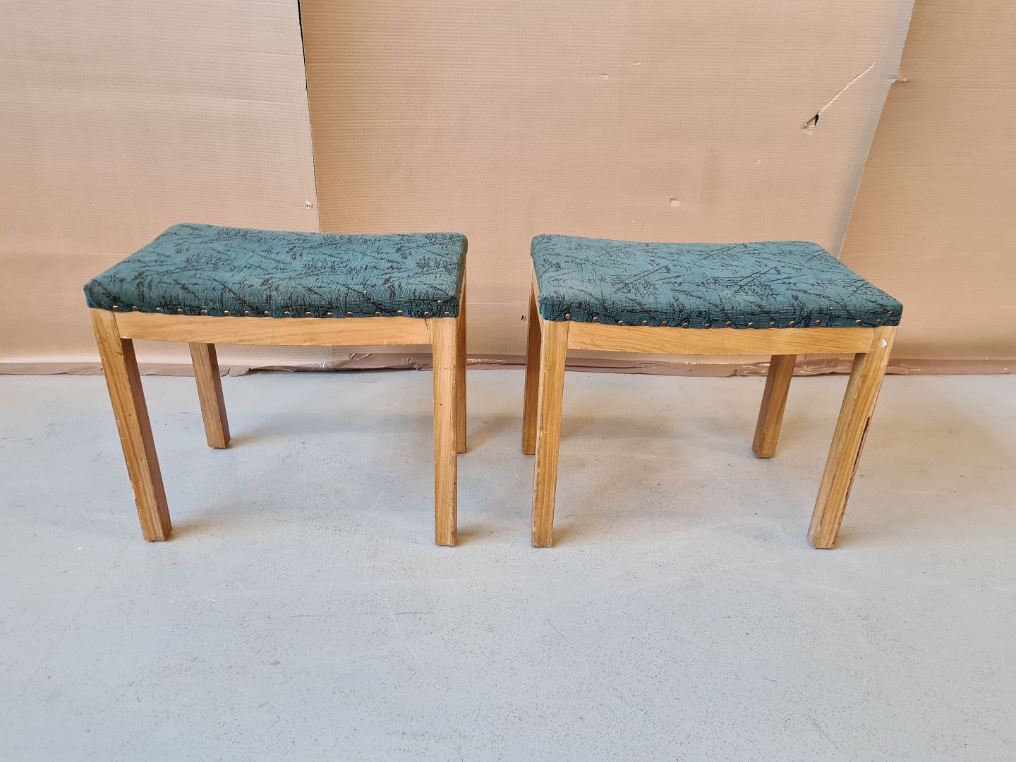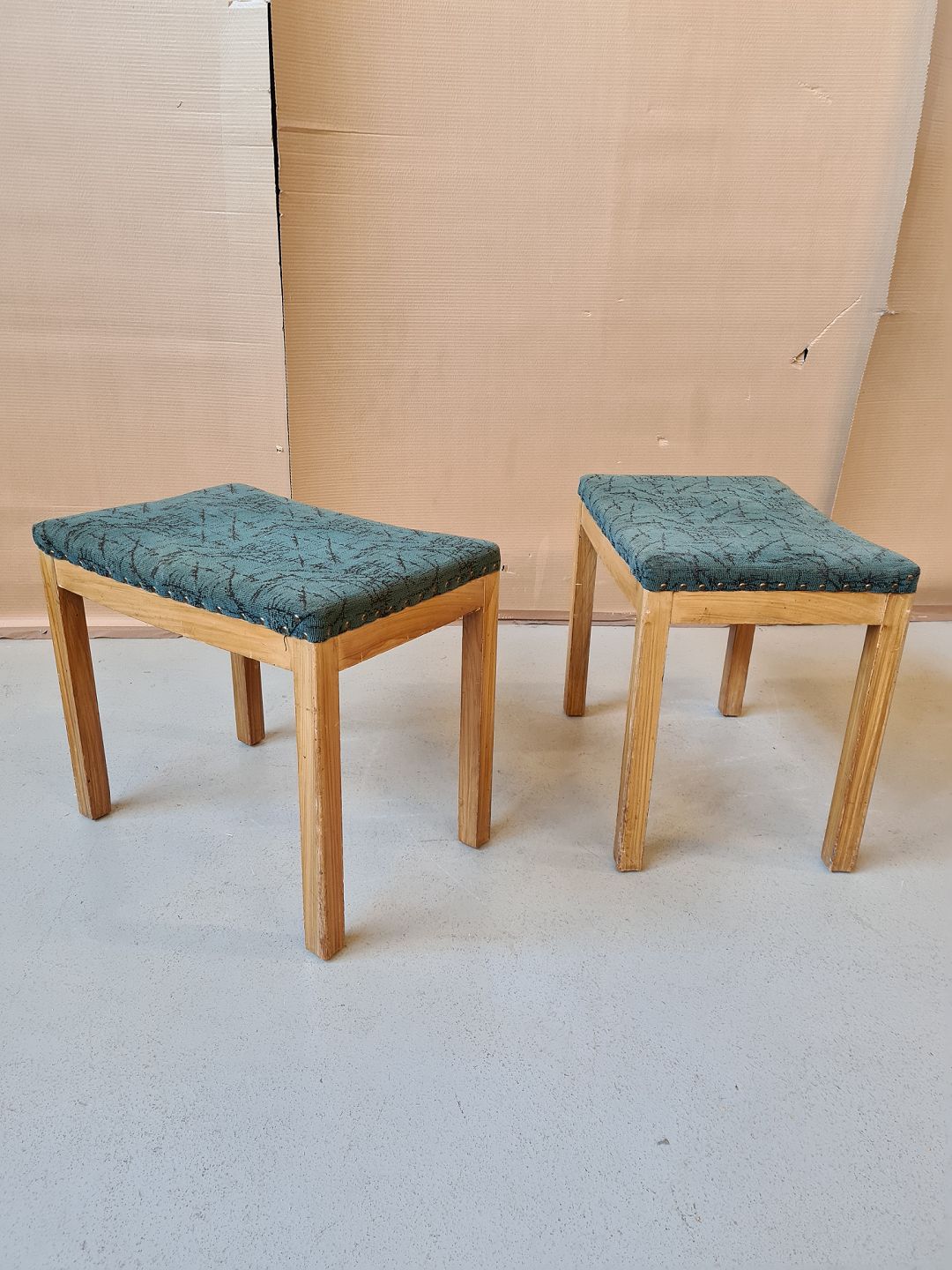 2 Taburetter af malet fyrretræ fra 1930erne.