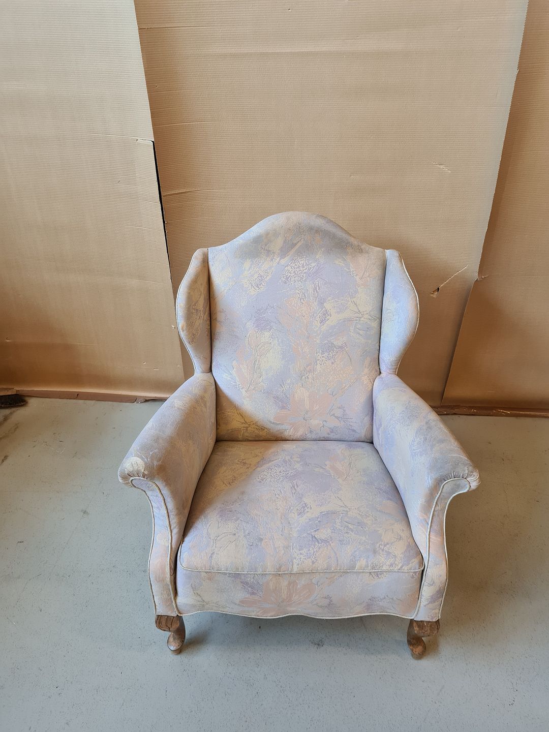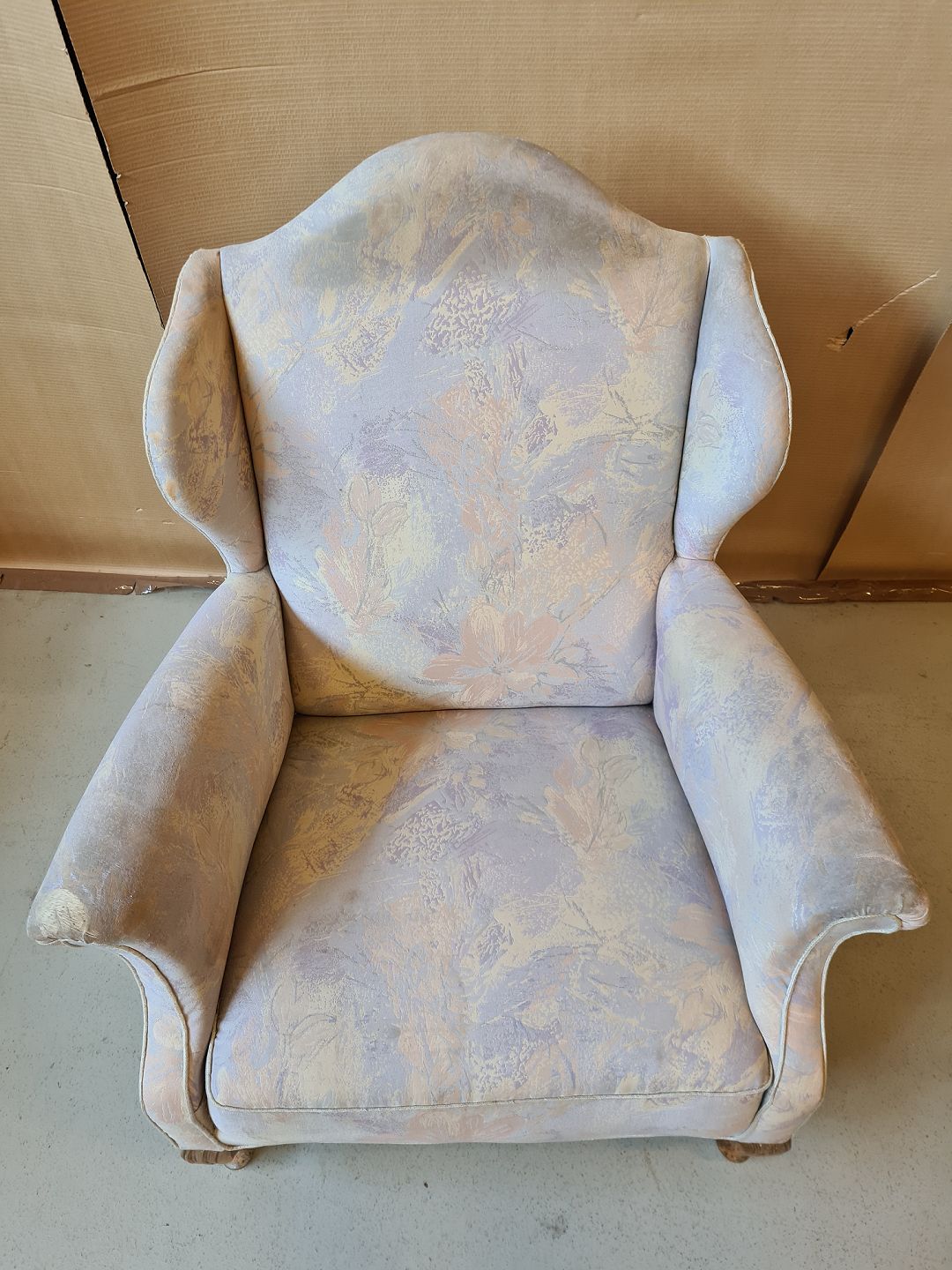 Lænestol fra 1930erne. Betrækket har brugsspor.