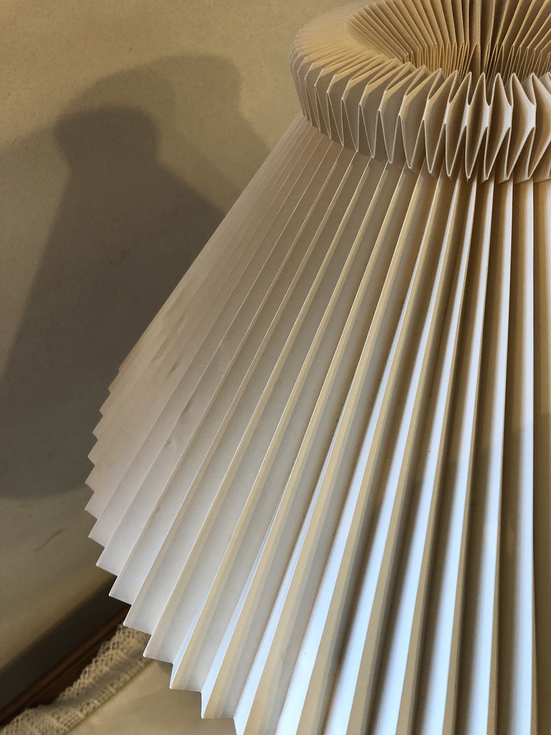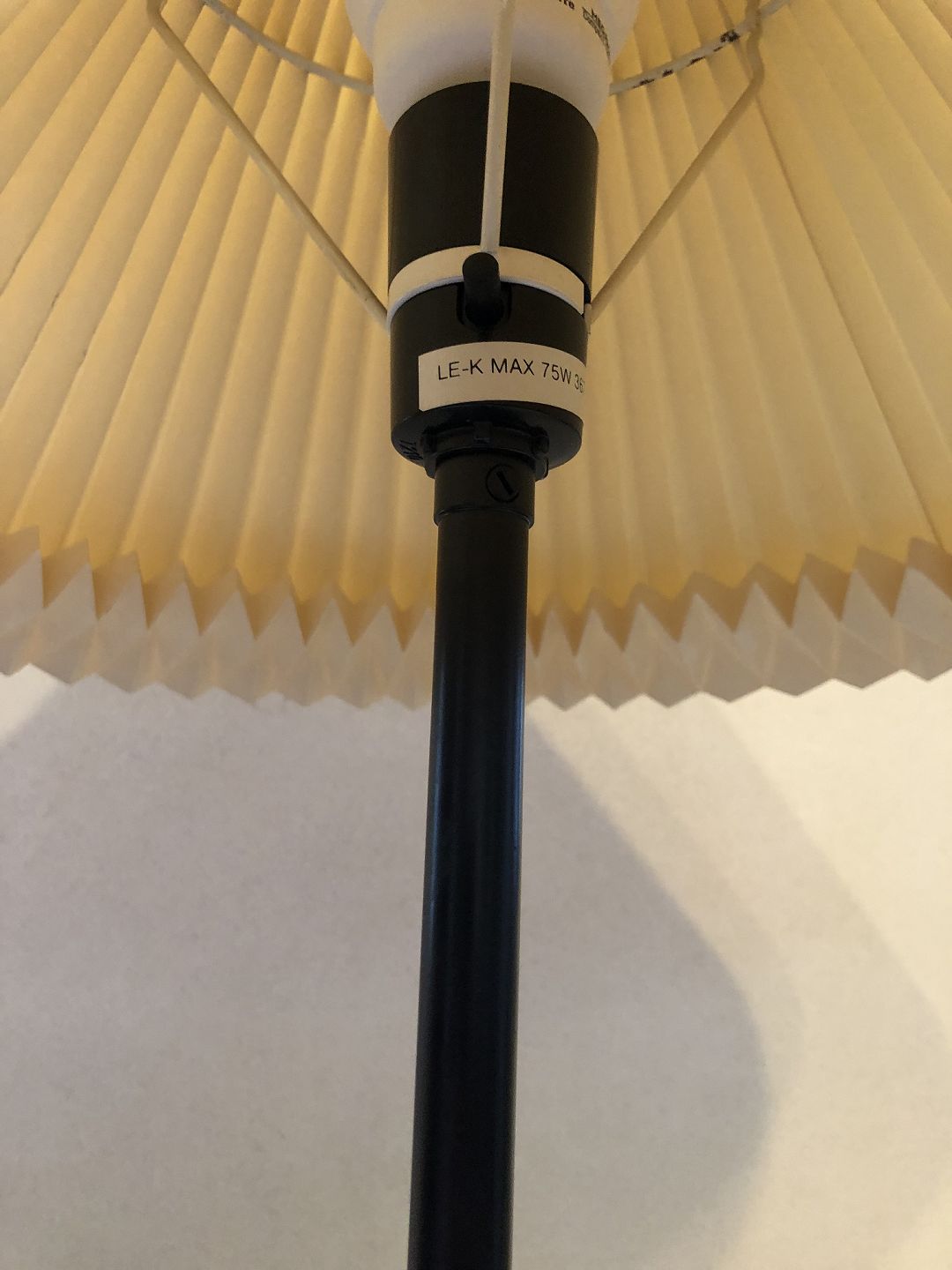 Le Klint bordlampe i sort lakeret metal. Pæn brugt stand, skærm lettere gulnet med enkelte mærker. Højde 63 cm. Diameter skærm 43 cm. Emne nummer: 80074