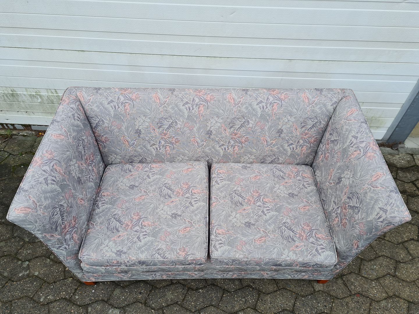 Lille sofa i stof betæk fra 1990erne. Den har brugsspor. H 75cm B 140cm D 62cm Sædehøjde 45cm Emne nummer: 71671