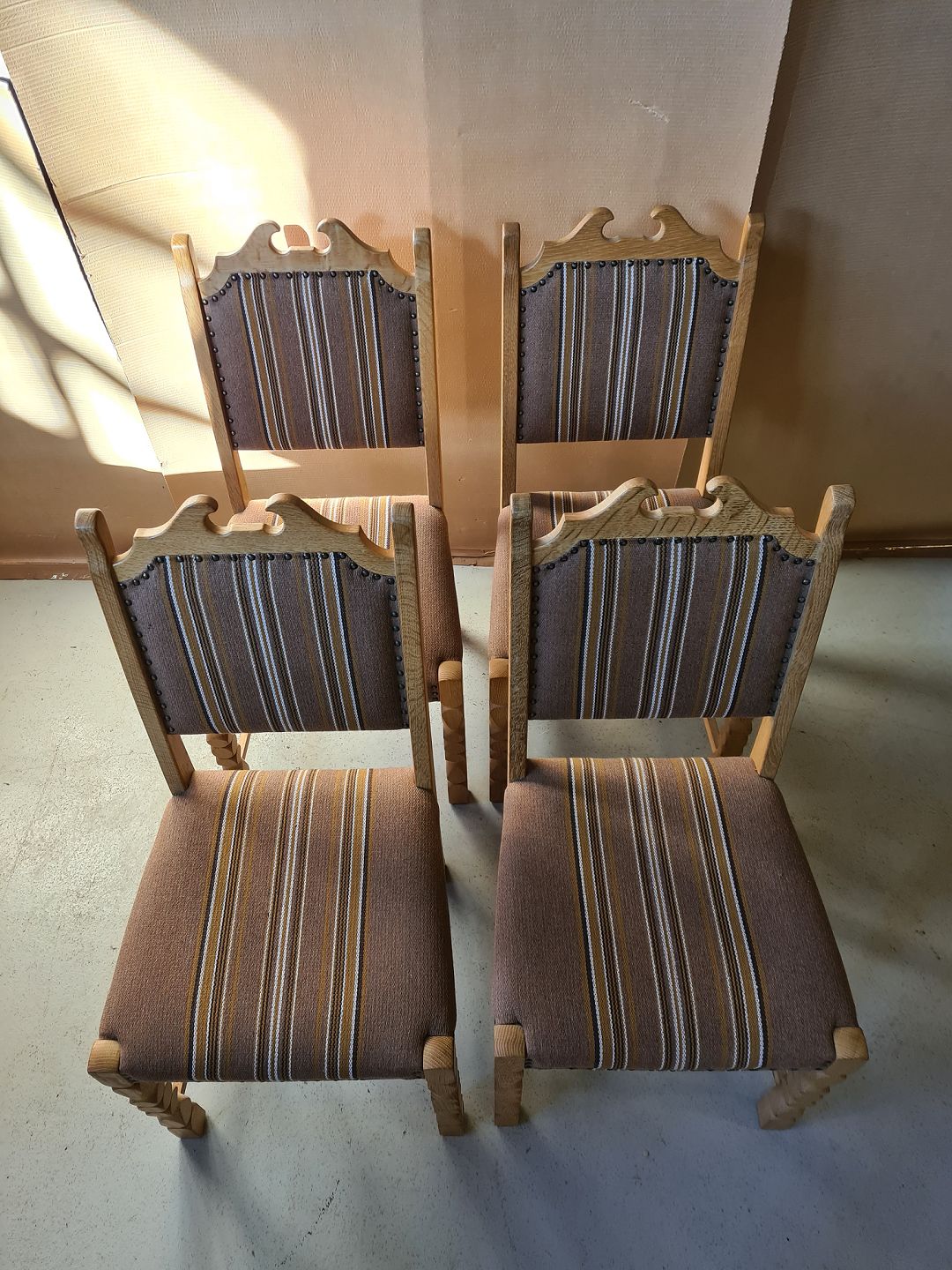 4 Stole i massivt egetræ fra 1980erne.