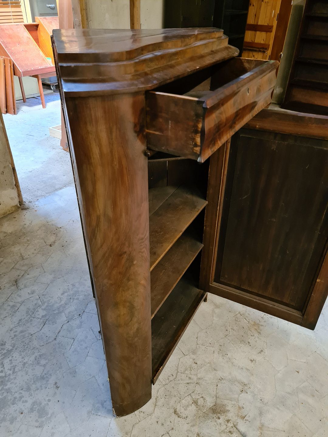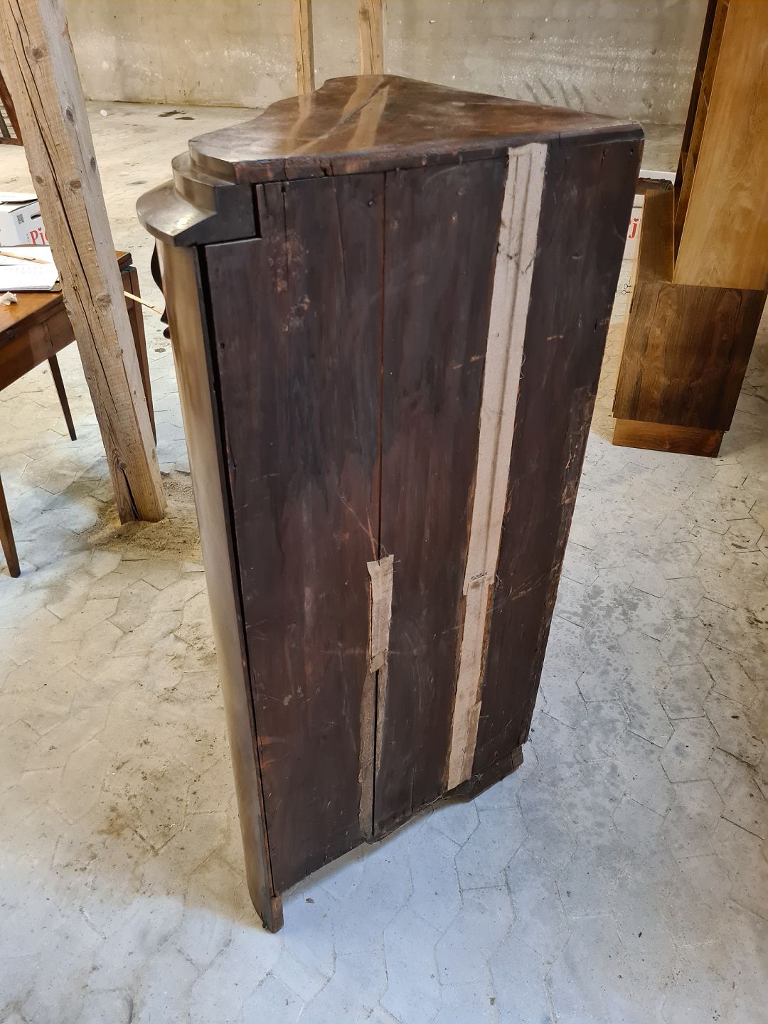 Udmærket hjørnskab i mahogni fra omkring 1900. Fremstår pænt og stabilt for alderen. HxBxD 143x95x69 cm.- Emne nummer: 90007