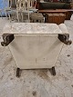Lækker overpolstret lænestol, med flotte udskæringer på de to forreste ben. lænestolen fremstår i flot stand med få tegn på slitage af polstring. Anno: 1920-1930 HxBxD - 108x83x95 Sædehøjde - 40cm Emne nummer: 90046