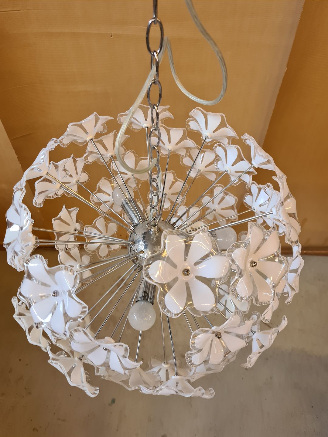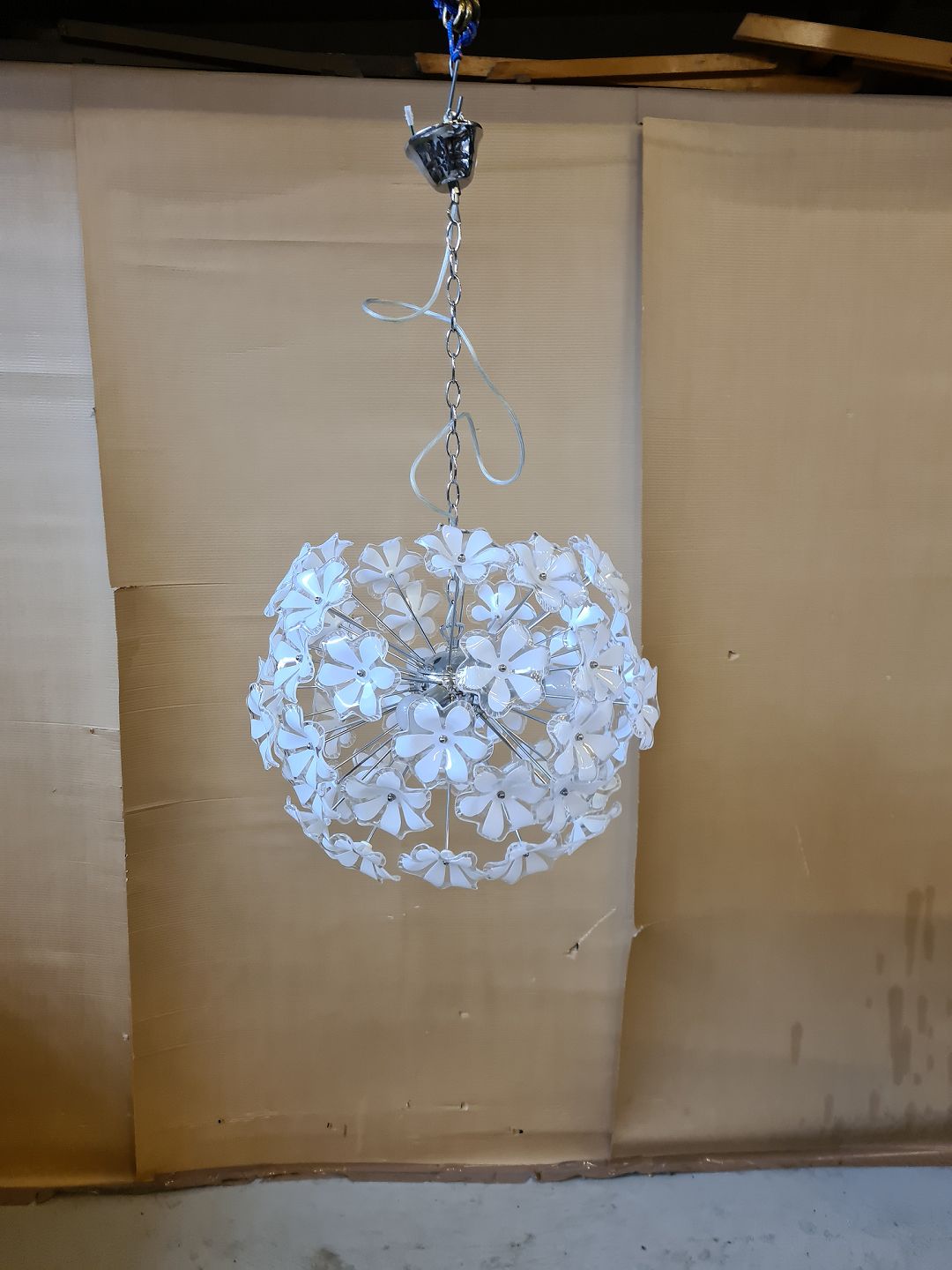 Loftlampe i metal med blomster af hård plast,den er fra 2000erne.