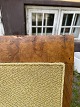 Udført i egetræ med rygstykke i fineret rodtræ. Betrukket med grønt stof.