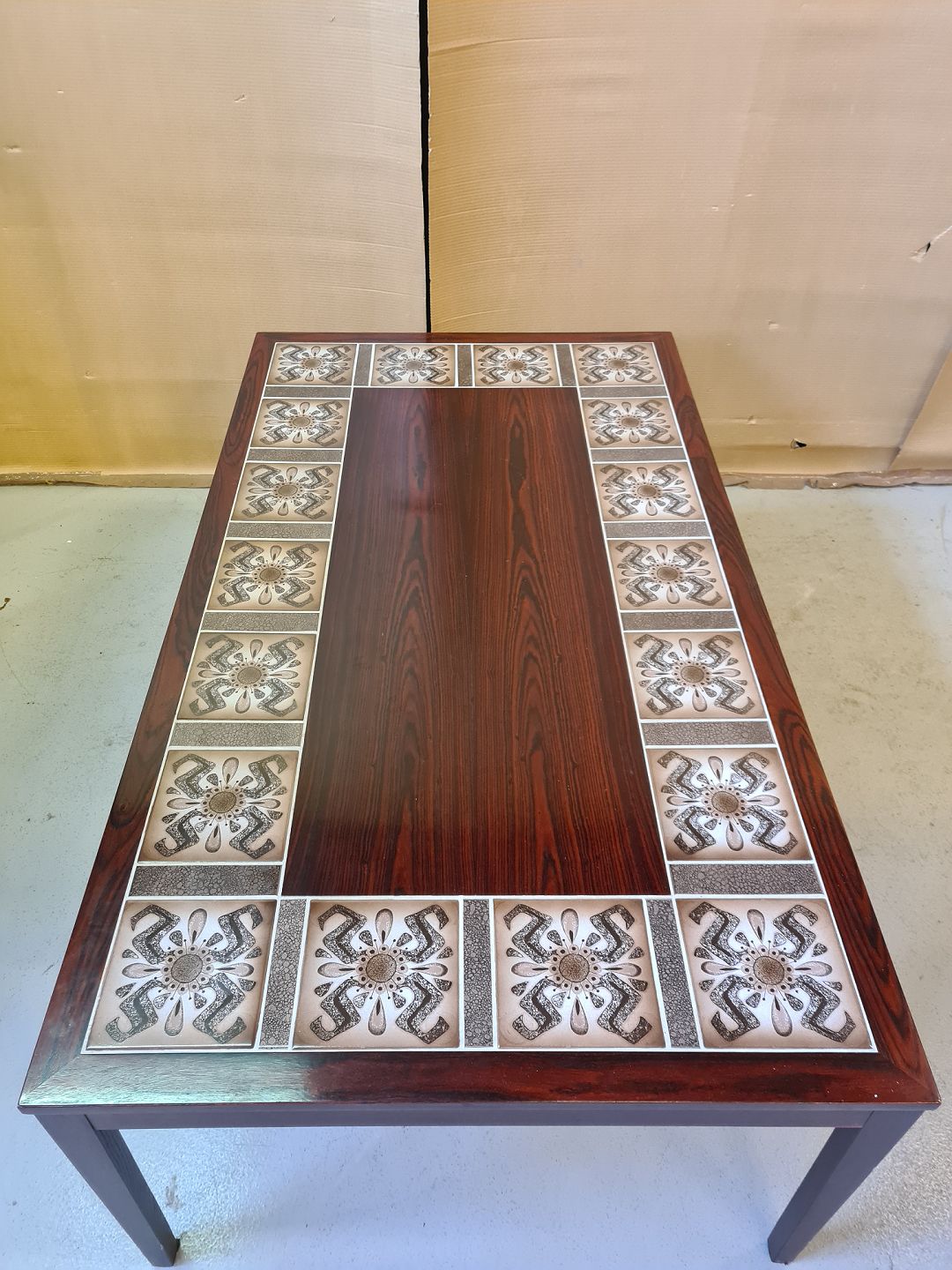 Sofabord i fineret palisander med kakler, fra 1980erne.