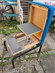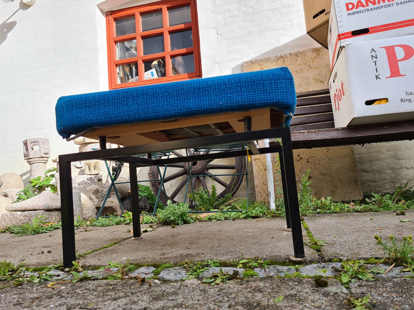 Taburet i metal med blåt stof på sædet fra 1970´erne. Kan hurtigt laves om til en lille trappestige. Fremstår udmærket funktionel. HxLxB: 42x57x42 cm. Højde ved øverste trin 56 cm. Emne nummer: 91007