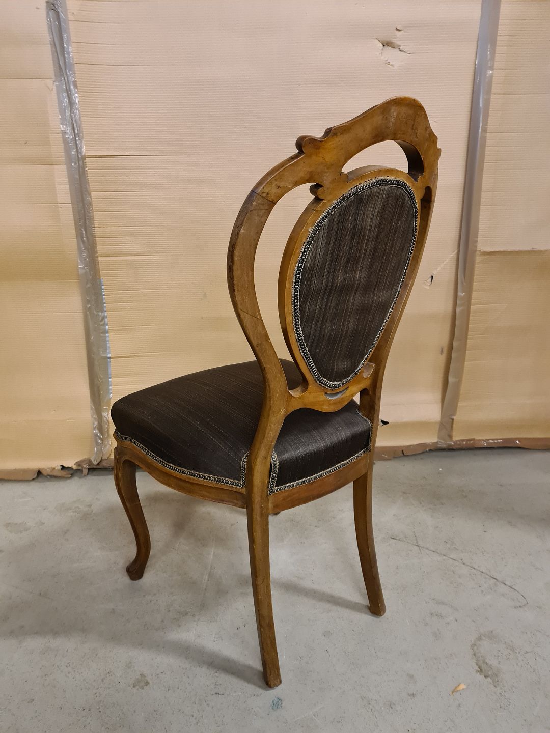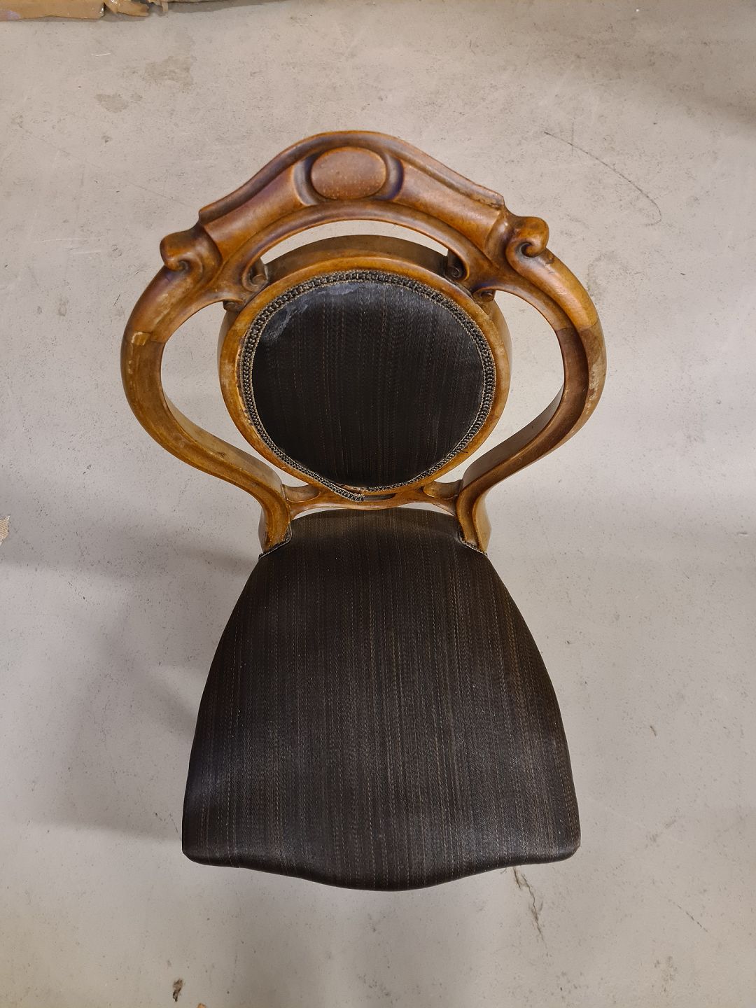 Salonstol i mahogni, fra 1890erne. Den rokker meget lidt, men er brugbar. Højde 95cm Sædehøjde 45cm Emne nummer: 72928