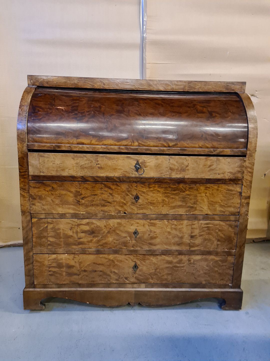 Chatol i fineret birketræ, fra 1890erne. Det har brugsspor og finer defekter. H 118cm B 112cm D 52cm Emne nummer: 73018