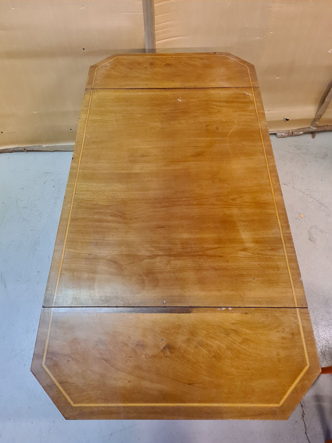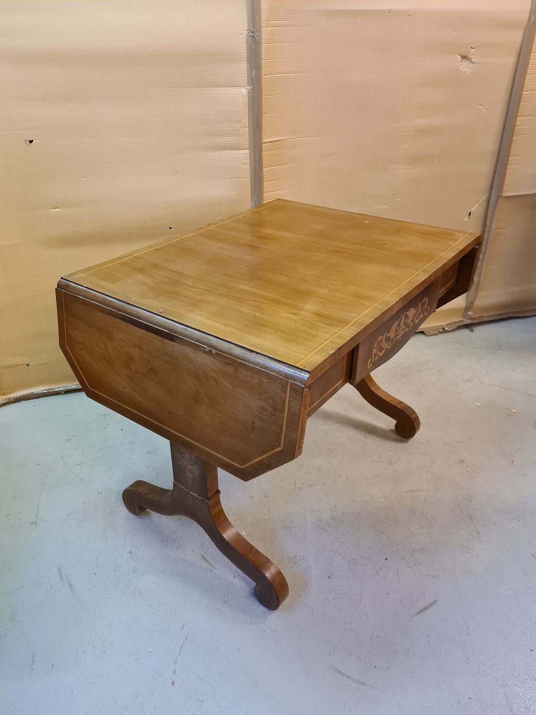Salonbord i fineret mahogni, fra 1900erne. Det har brugsspor. H 78cm B 73cm L 98cm Længde med klapper 146cm Emne nummer: 73067