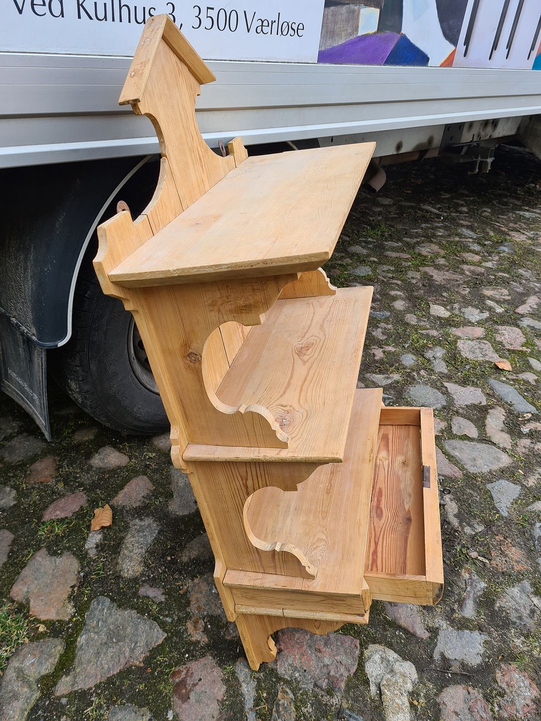 Vægreol udført i egetræ med messing håndtag. Højde: 102cm Bredde: 56cm dybde: 25cm. Emne nummer: 50668