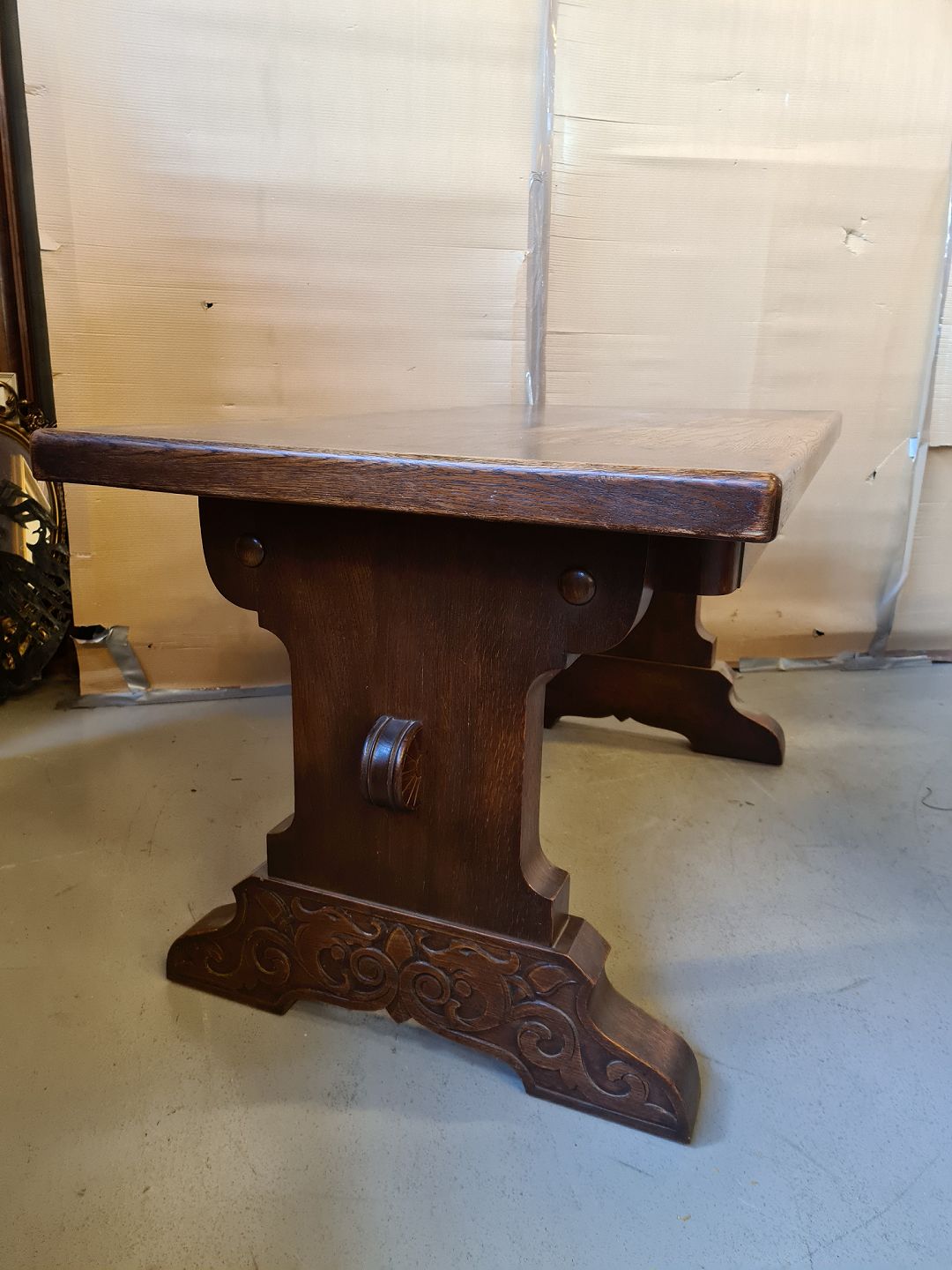 Bord i fineret egetræ, fra 1930erne. Det har brugsspor. Højde 76cm Bredde 79cm Længde 152cm Emne nummer: 73870