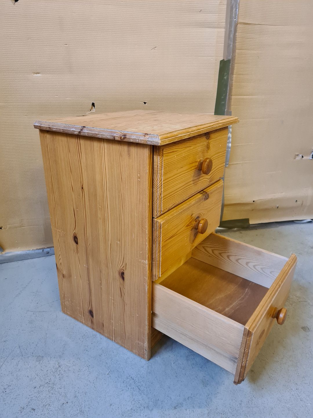 Kommode i massivt fyrretræ, fra 1990erne. Den har brugsspor. Højde 62cm Bredde 45cm Dybde 39cm Emne nummer: 74139