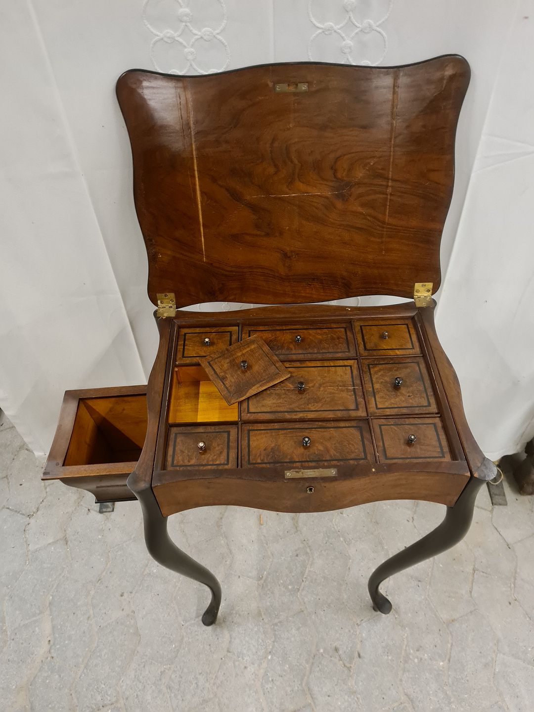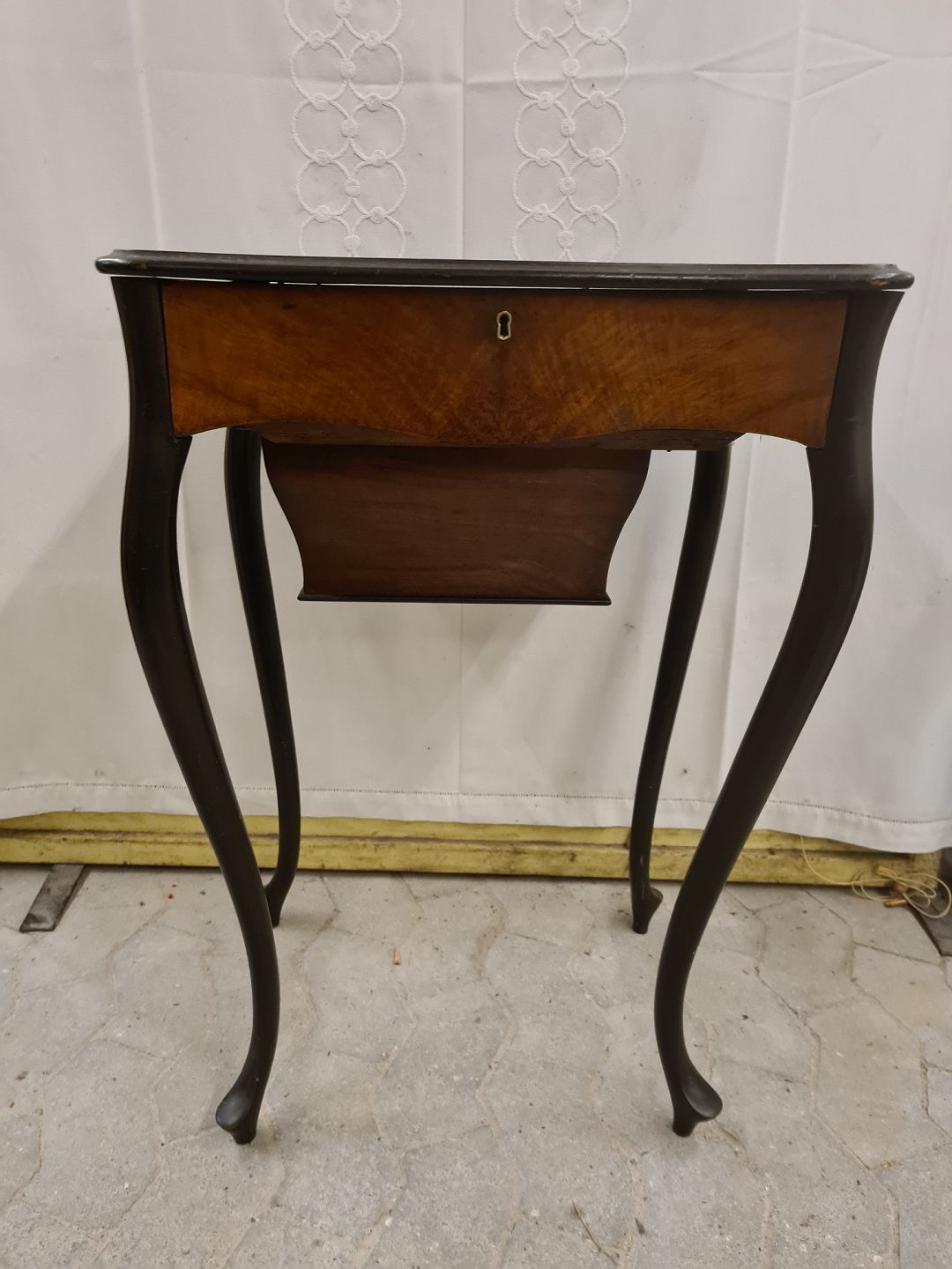 Sybord i massivt bøgetræ og fineret mahogni, fra 1910erne. Det har brugsspor. Højde 76cm Bredde 43cn Dybde 39cm Emne nummer: 90520