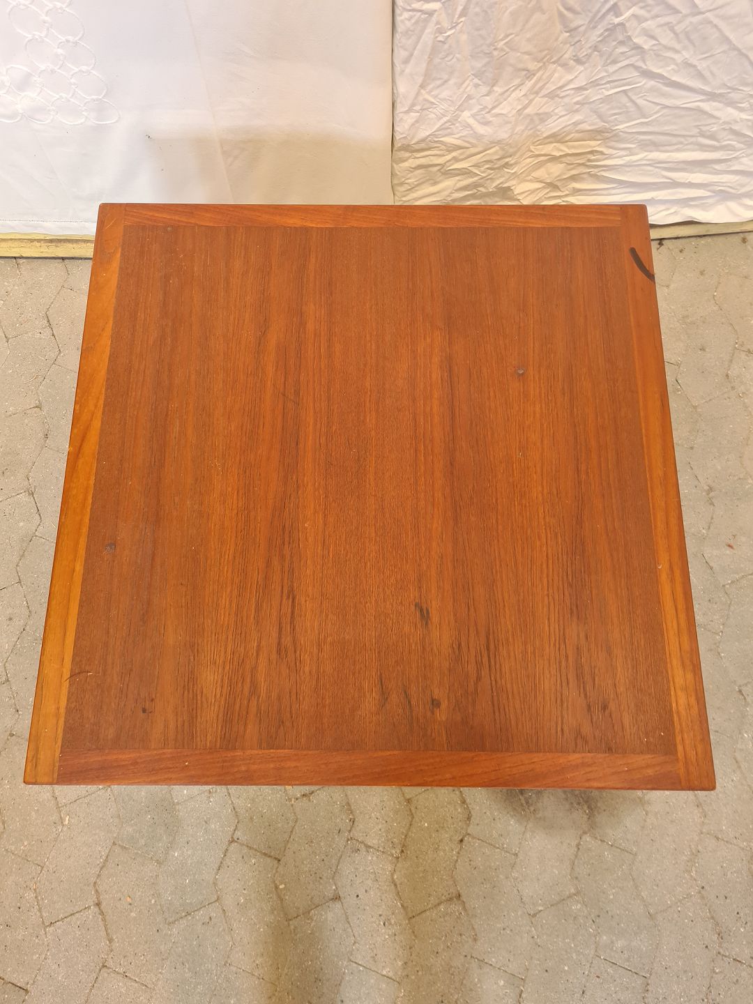 Sofabord Designet af Børge Mogensen produceret af fredericia Stolefabrik udført i fineret og massivt teaktræ, fra 1974. Det har brugsspor. Højde 55cm Bredde 80cm Dybde 80cm Emne nummer: 90546