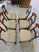 6 Salonstole i massivt bøgetræ med fineret mahogni, fra 1900erne. De har brugsspor og finer defekter og de trænger til nyt betræk. Ryghøjde 97cm Sædehøjde 50cm Emne nummer: 90570