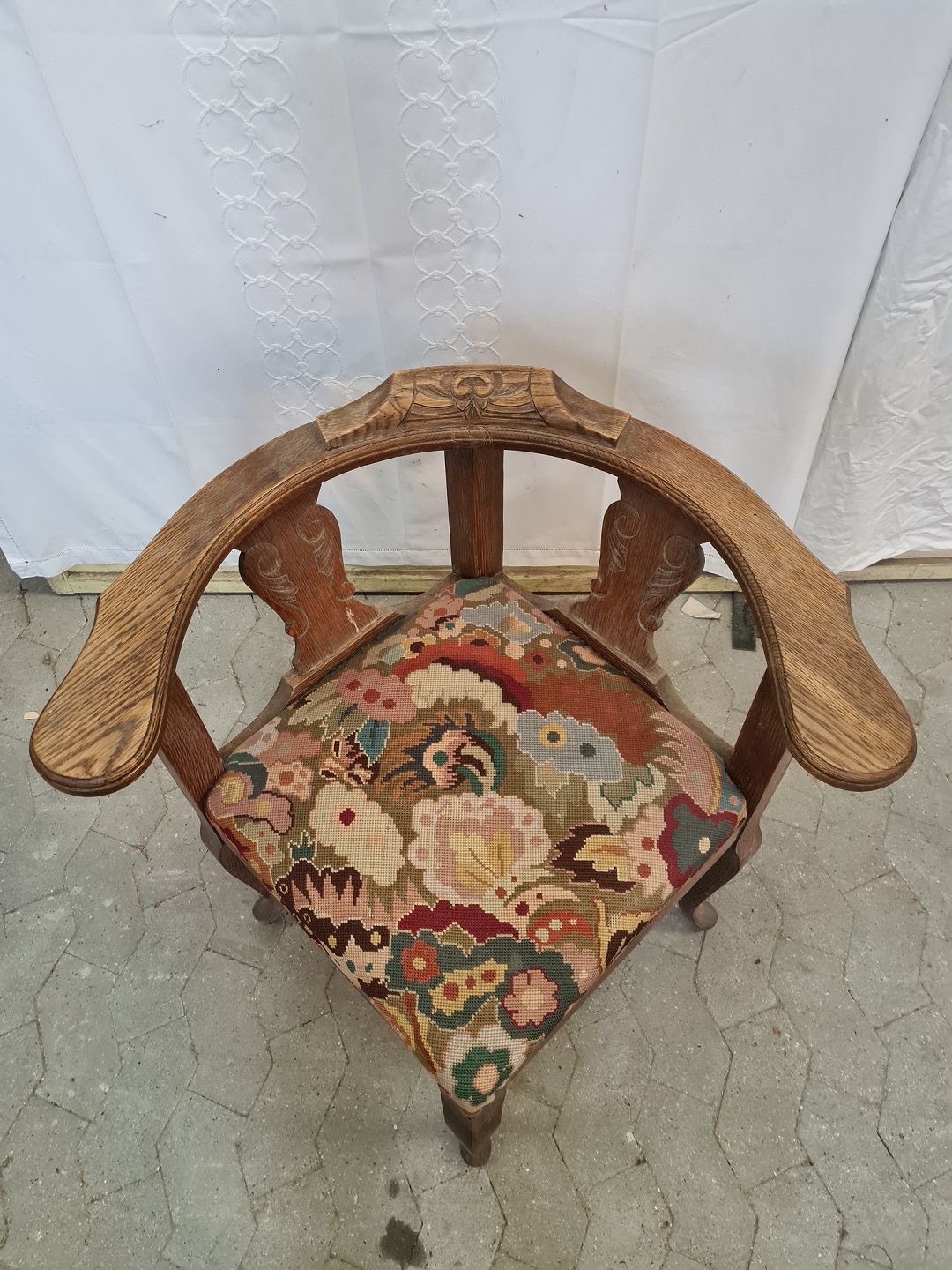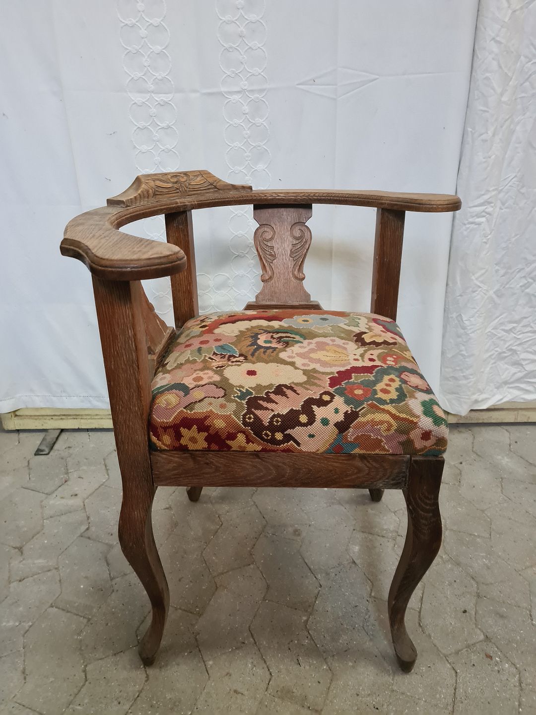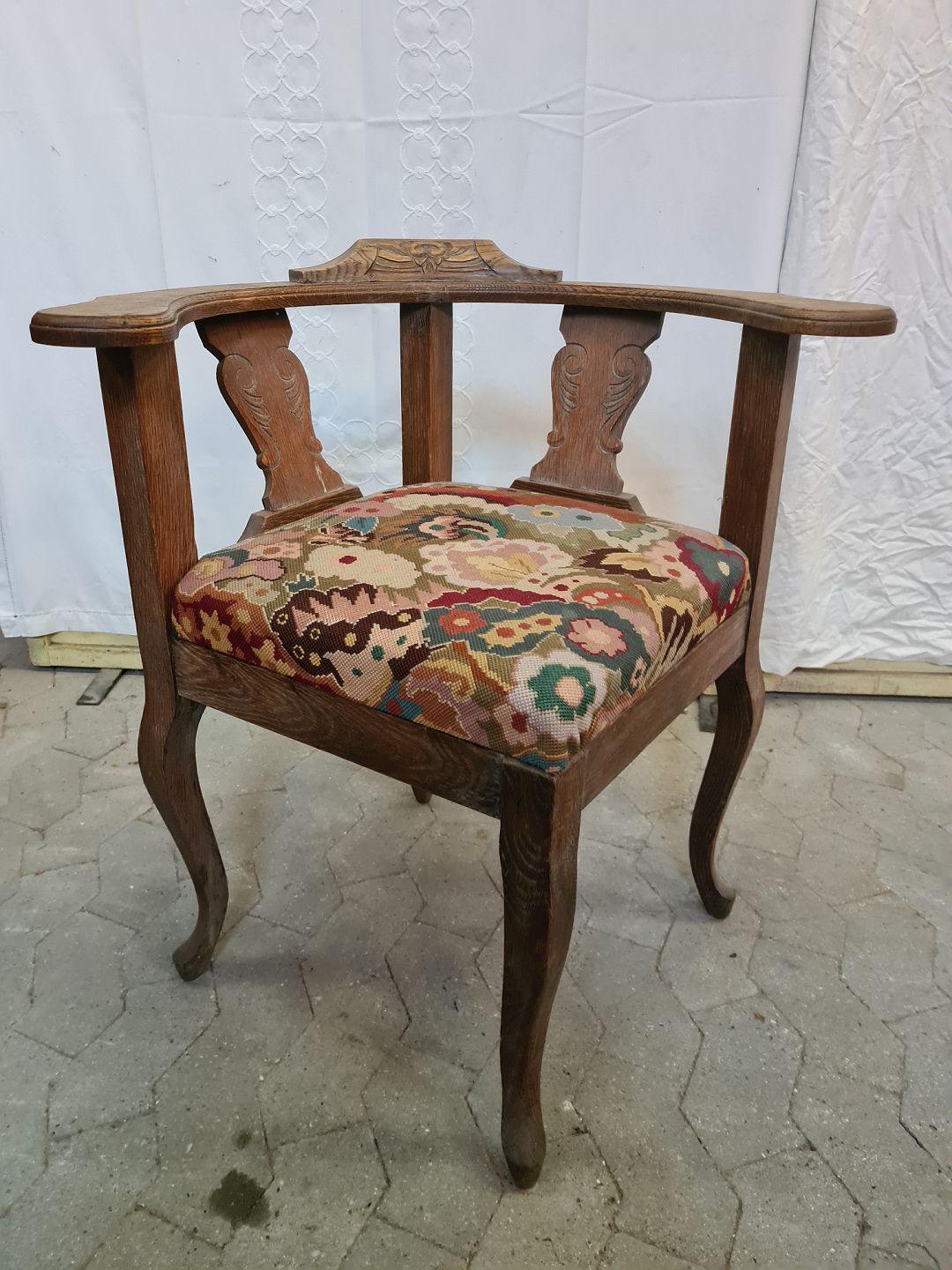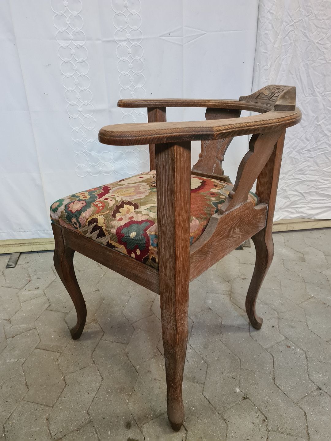 Armstol i massivt egetræ, fra 1920erne. Den har brugsspor. Ryghøjde 78cm Sædehøjde 50cm Emne nummer: 90592