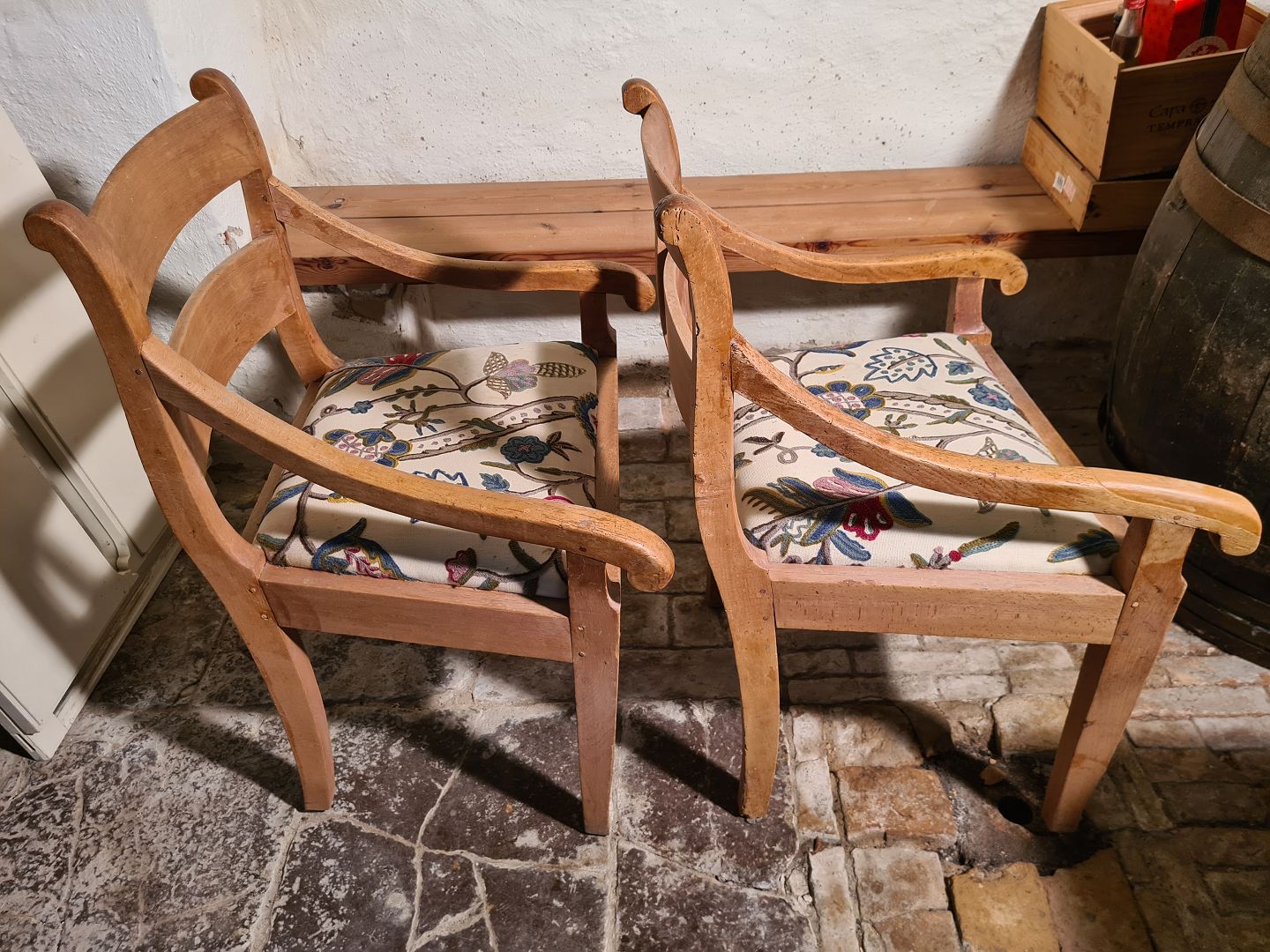 2 Armstole fra starten af 1900 tallet. Fremstår aldeles velholdte og udmærket stabile uden nævneværdige brugsspor. HxBxD 90x62x52 cm. Siddehøjde 51 cm. Emne nummer: 80284