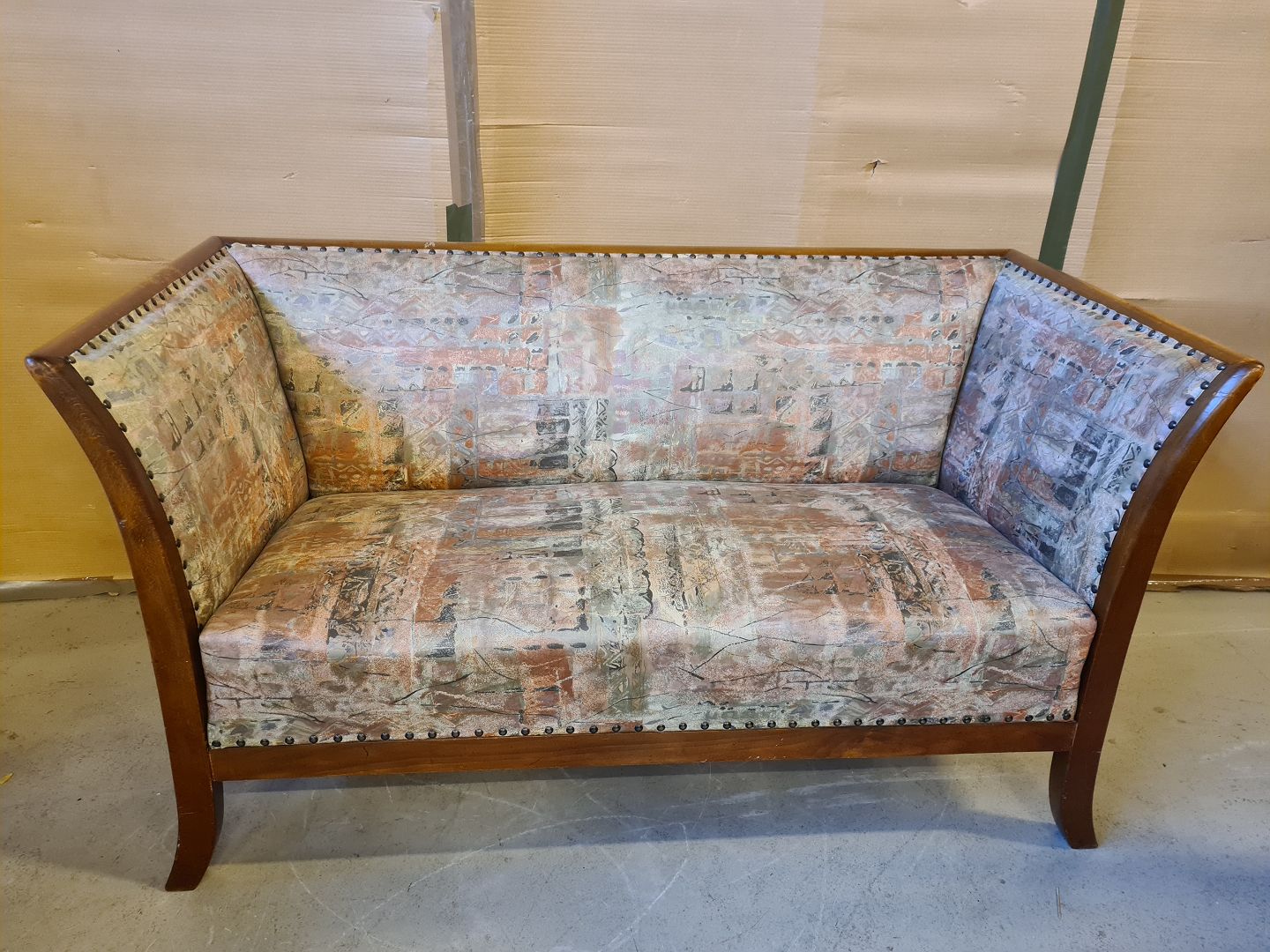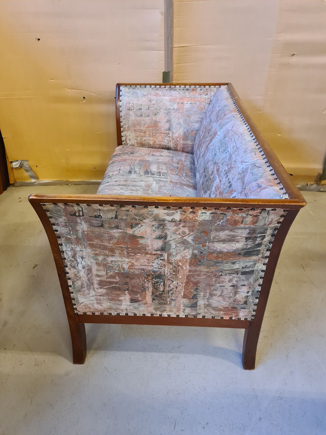 Sofa i mahogni, fra 1950erne. Den har brugsspor. Ryghæjde 76cm Bredde 142cm Dybde 72cm Sædehøjde 44cm Emne nummer: 74426