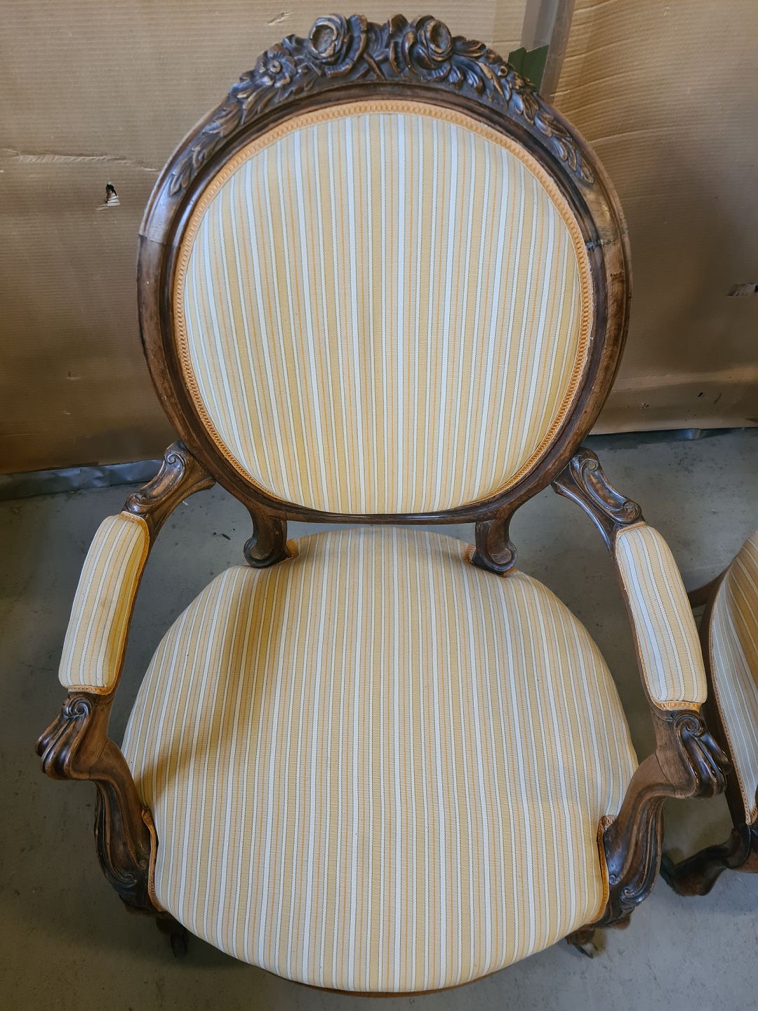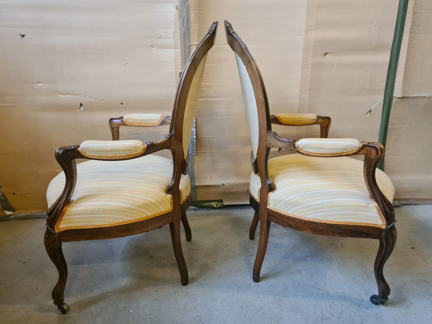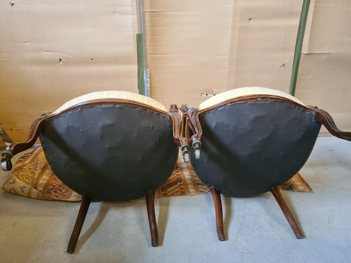 2 Stole i massivt mahogni og bøgetræ, fra 1890erne. De har patina. Ryghøjde 98cm Sædehøjde 41cm Emne nummer: 74684