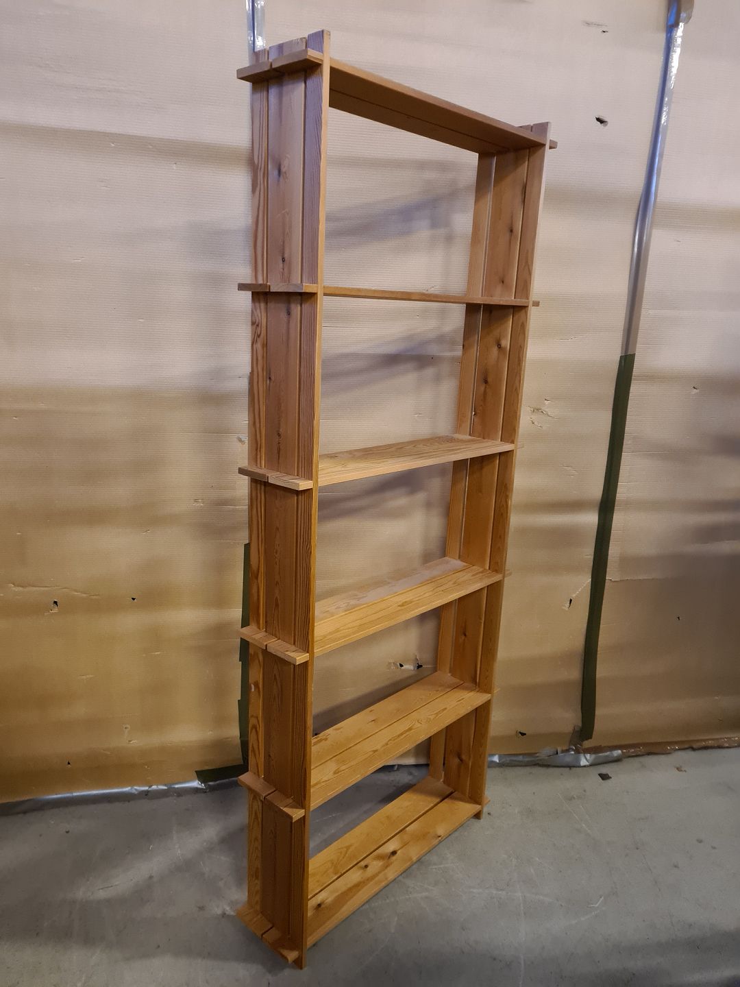 Reol i massivt fyrretræ, fra 1980erne.
