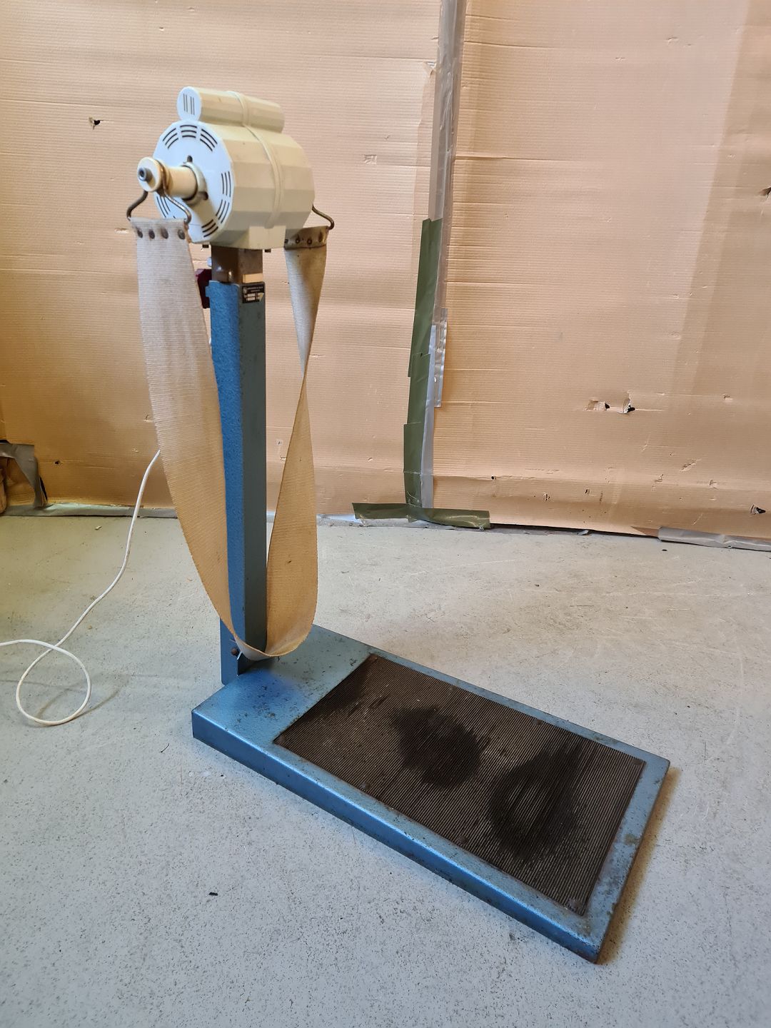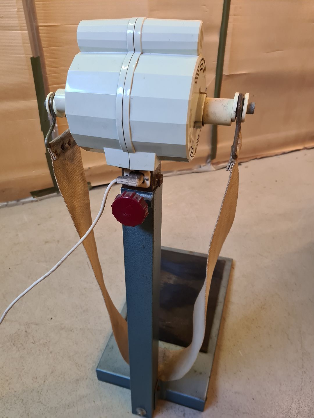 Funktionsdygtig vibrationsmaskine fra 1960erne. Den har brugsspor. Højde 97cm Bredde 37cm Længde 78cm Emne nummer: 74938