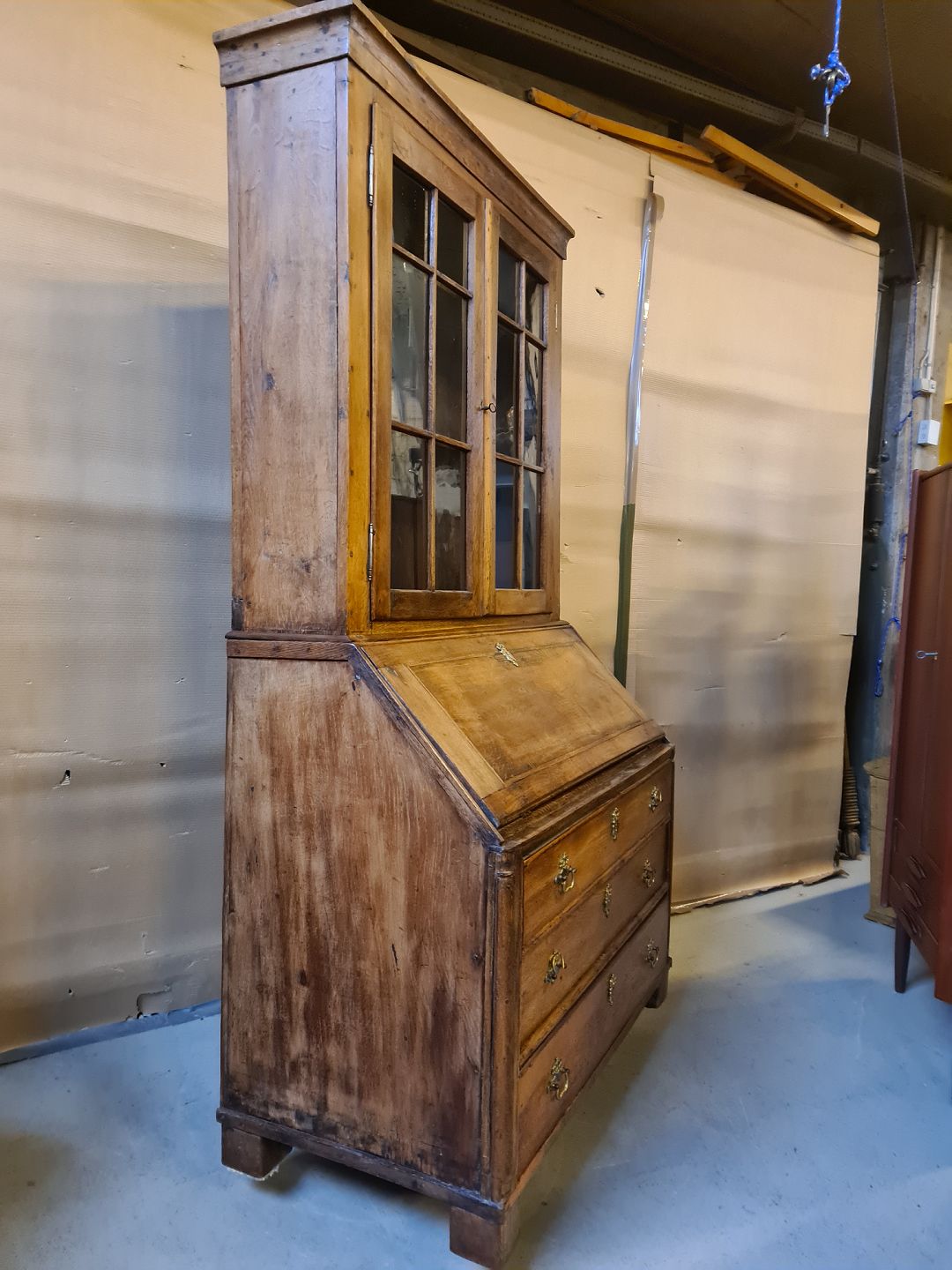 Chatol i massivt egetræ, fra 1890erne. Det har patina og en revne i det ene glas i lågen. Højde 191cm Bredde 127cm Dybde 55cm Emne nummer: 75052