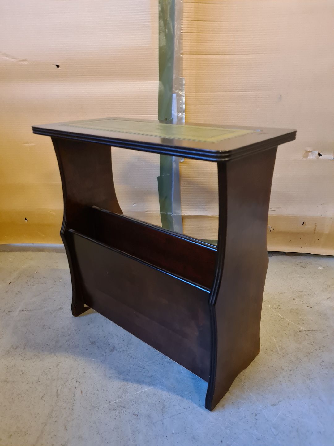 Lille bord i fineret mahogni, fra 1980erne. Det har små brugsspor. Højde 50cm Bredde 24cm Længde 50cm Emne nummer: 75063