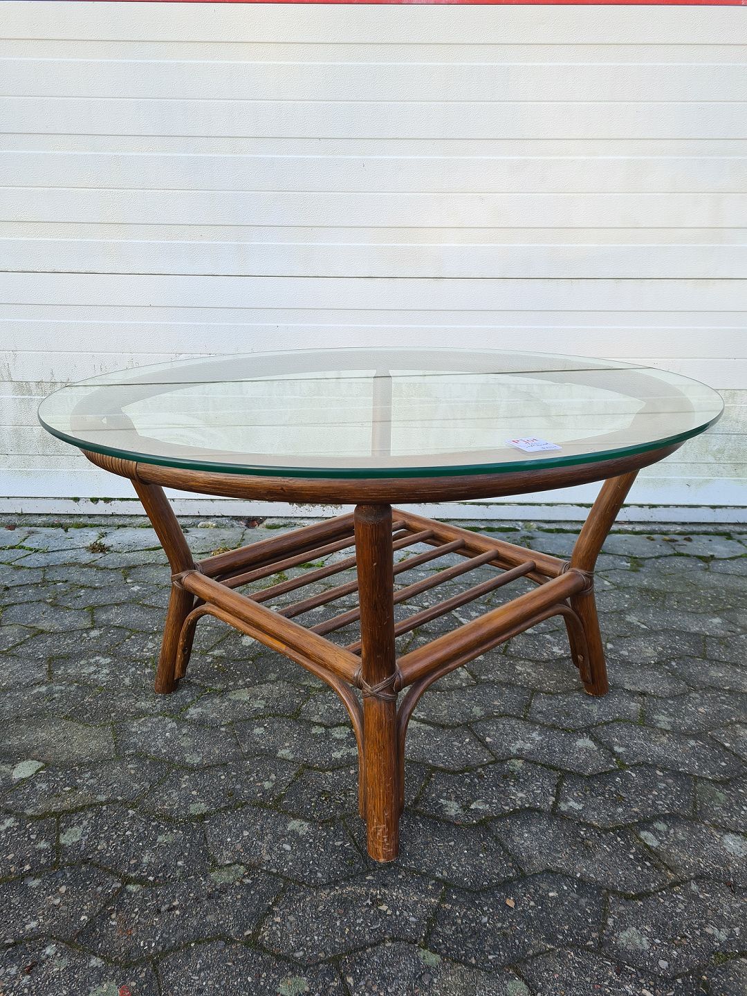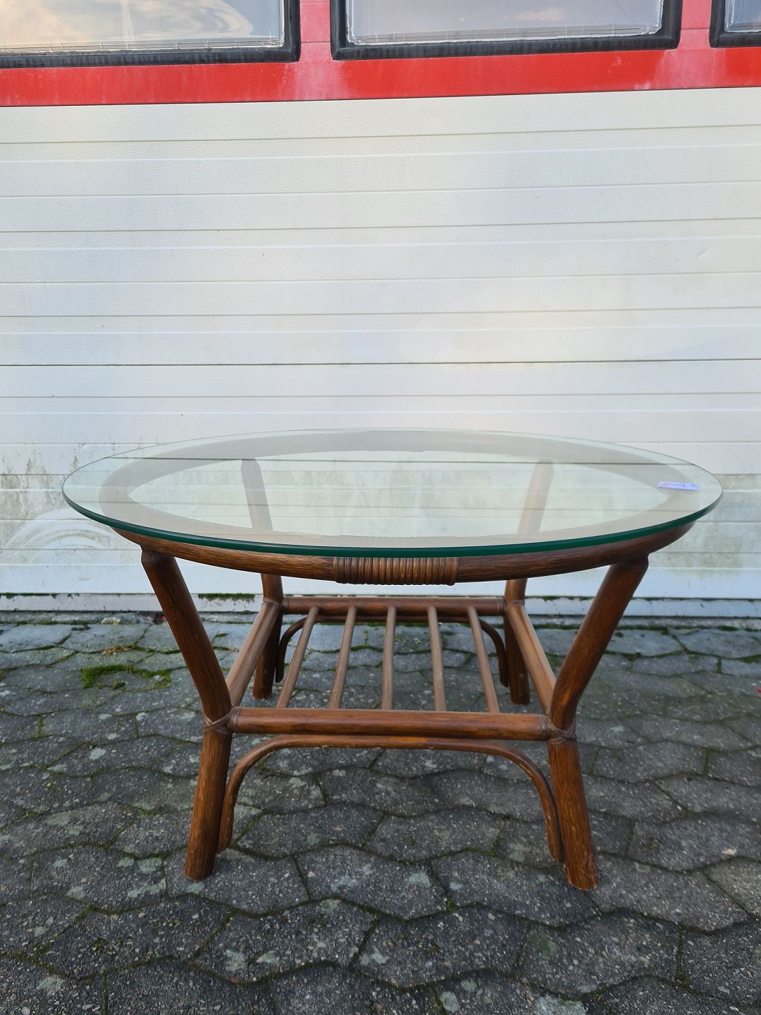 Sofabord i bambus med glasplade, fra 1980erne.