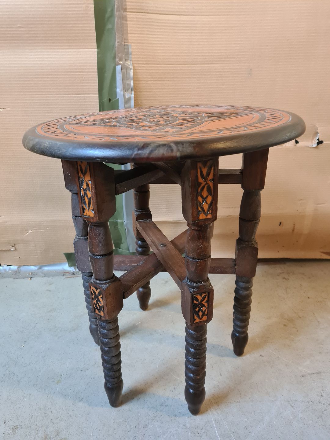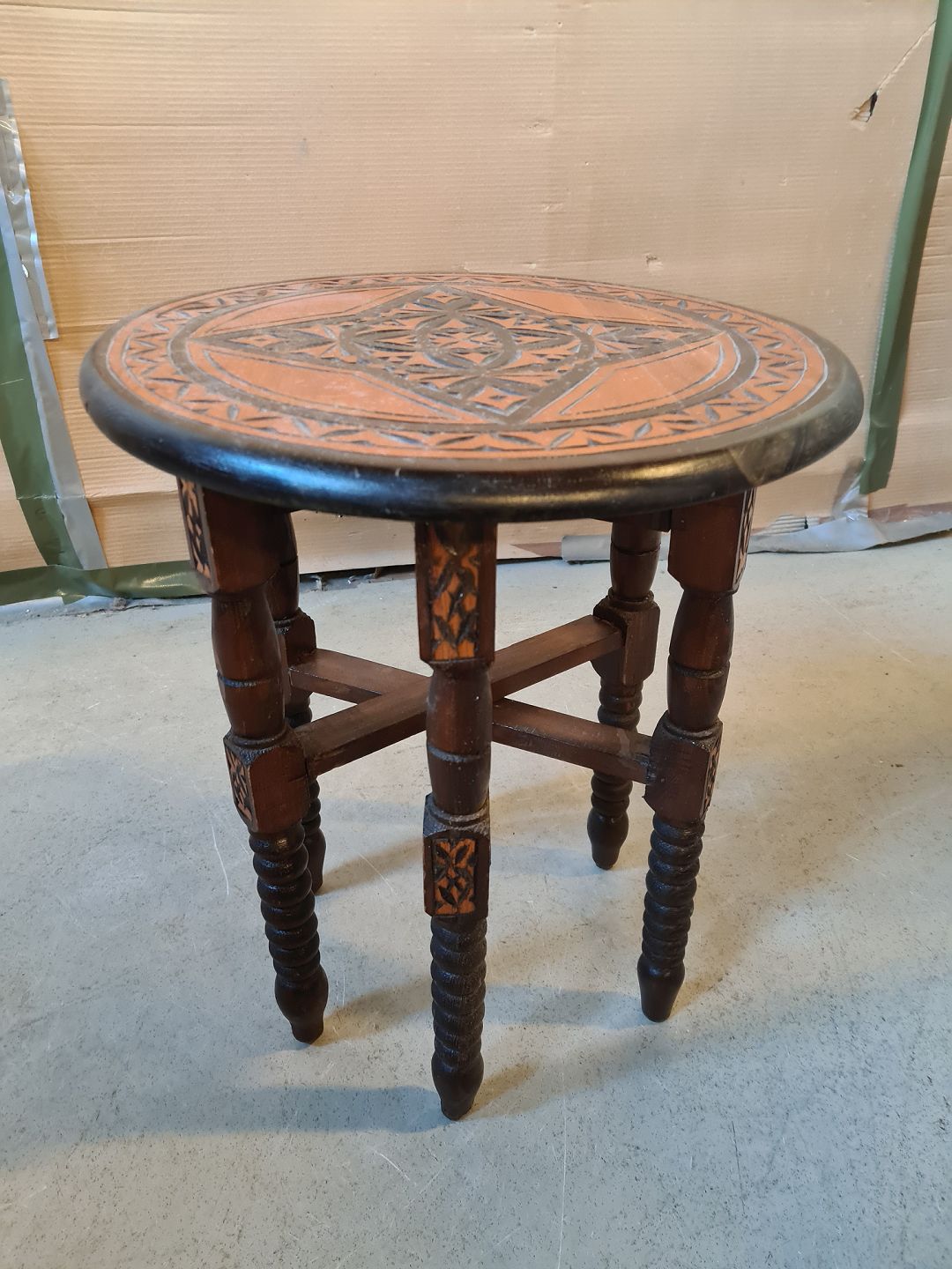 Lille bord i massivt fyrretræ, fra 1970erne. Det her brugsspor. Højde 47cm Diameter 40cm Emne nummer: 75246