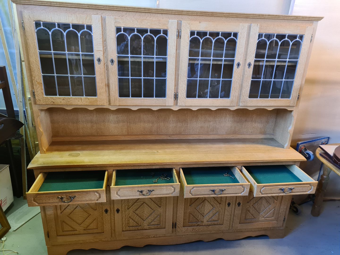 Buffet i massivt og fineret egetræ, fra 1980erne.