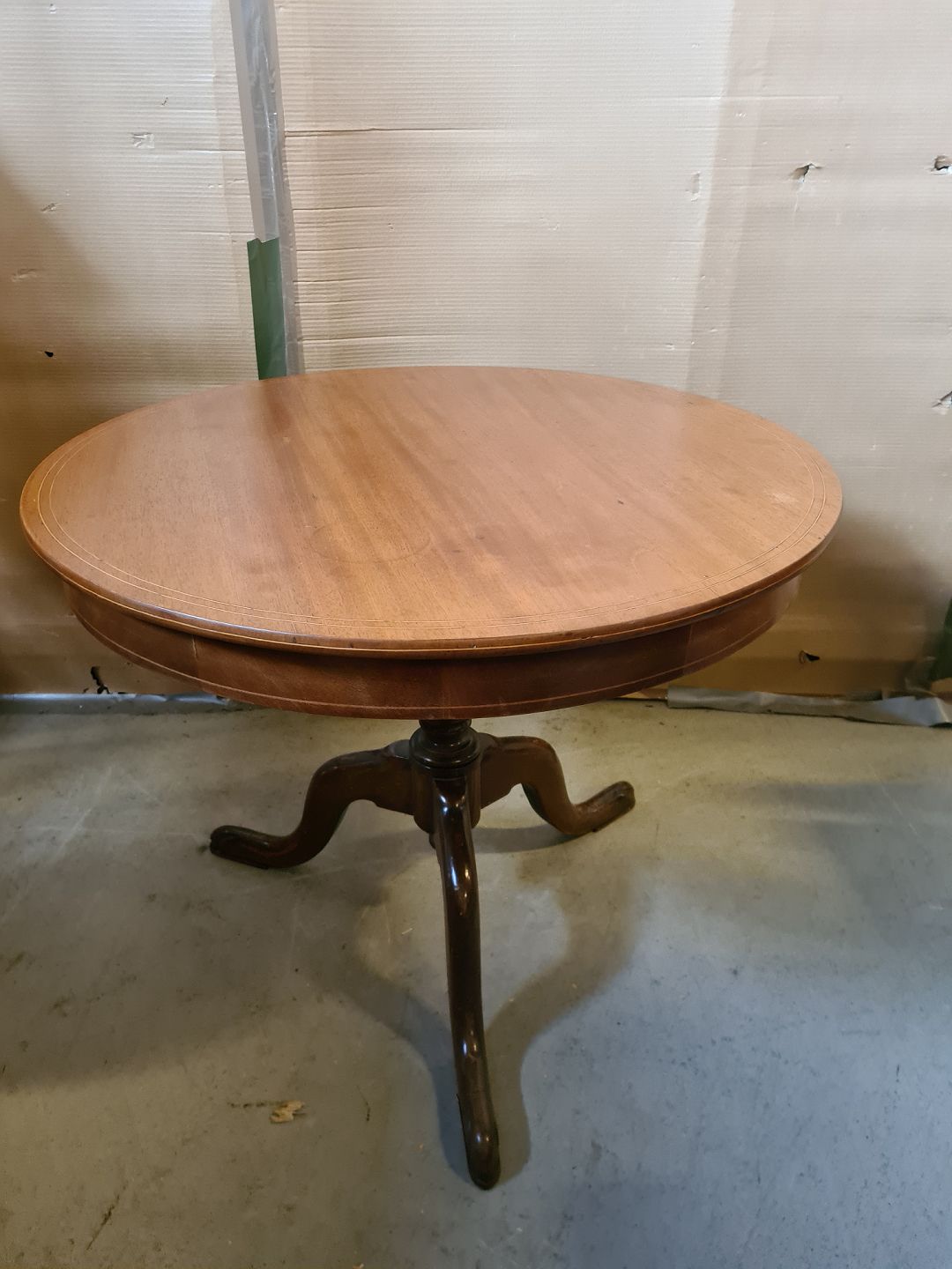 Salondord i fineret mahogni, fra 1920erne. Det har brugsspor. Højde 66cm Diameter 80cm Emne nummer: 75492