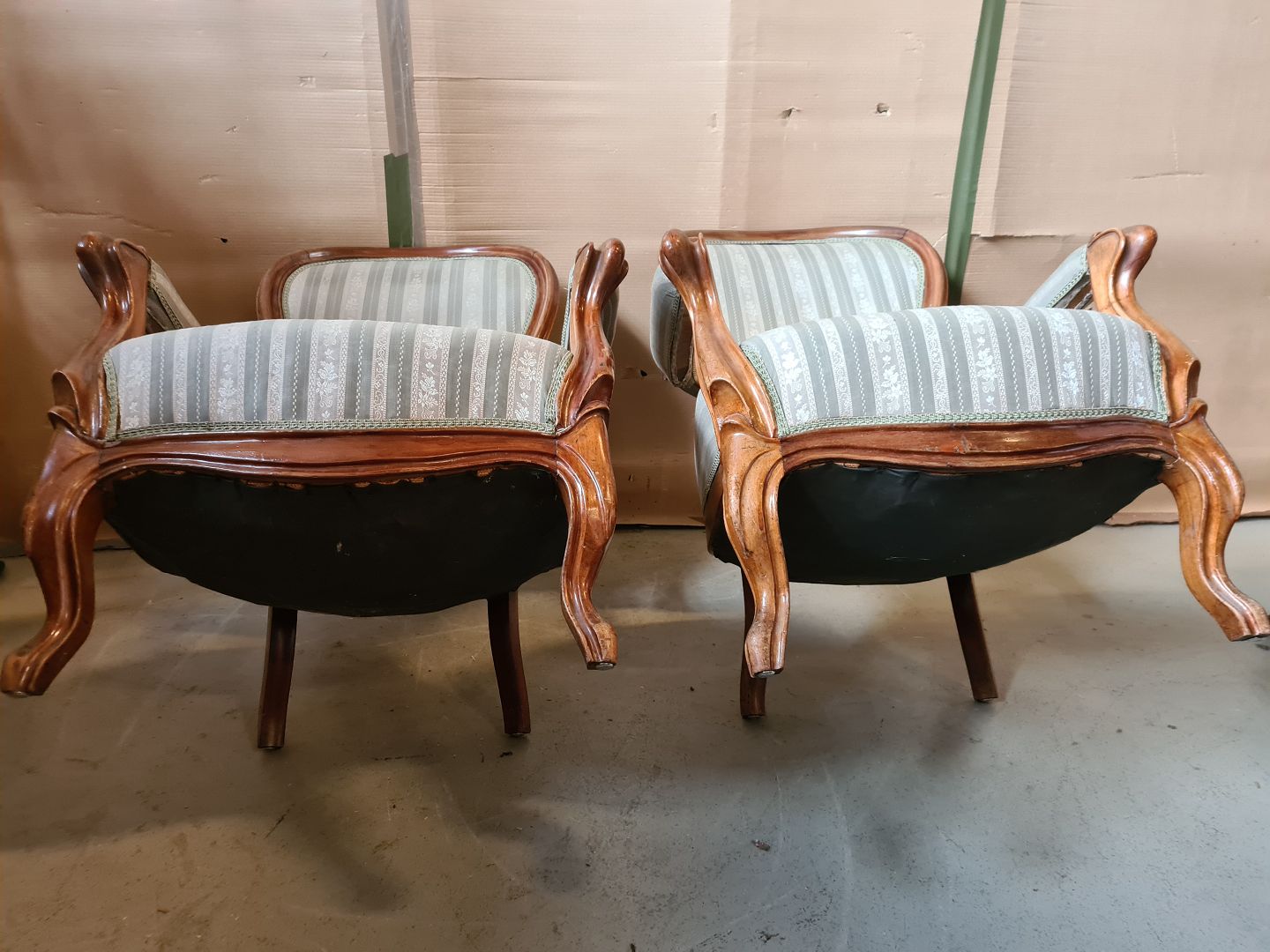 2 Armstole i mahogni, fra 1890erne. De har brugsspor. Ryghøjde 98cm Sædehøjde 39cm Emne nummer: 75495