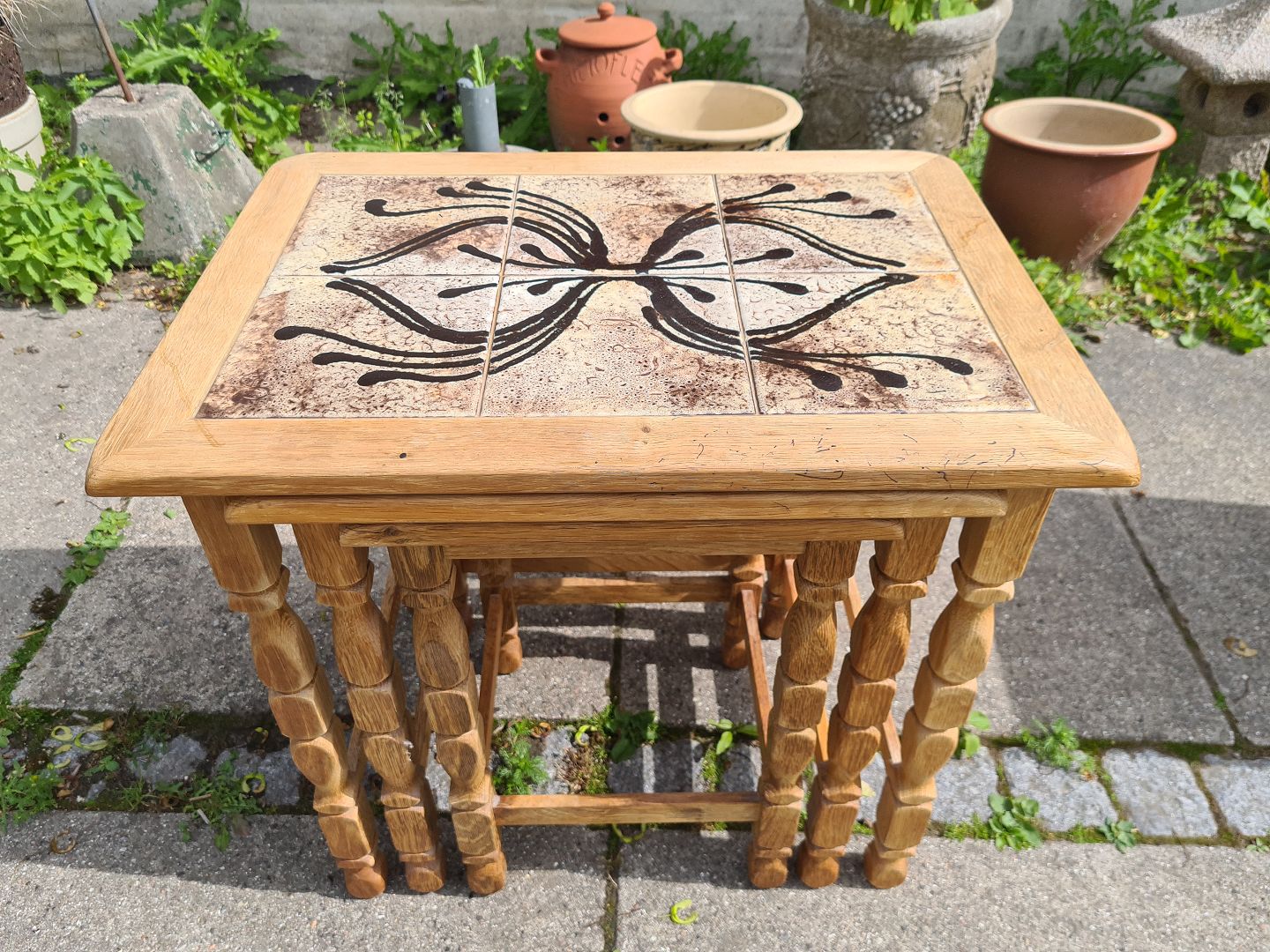 Indskudsborde fra 1970´erne i eg og med kakler. Sættet fremstår pænt og stabilt uden de store brugsspor.