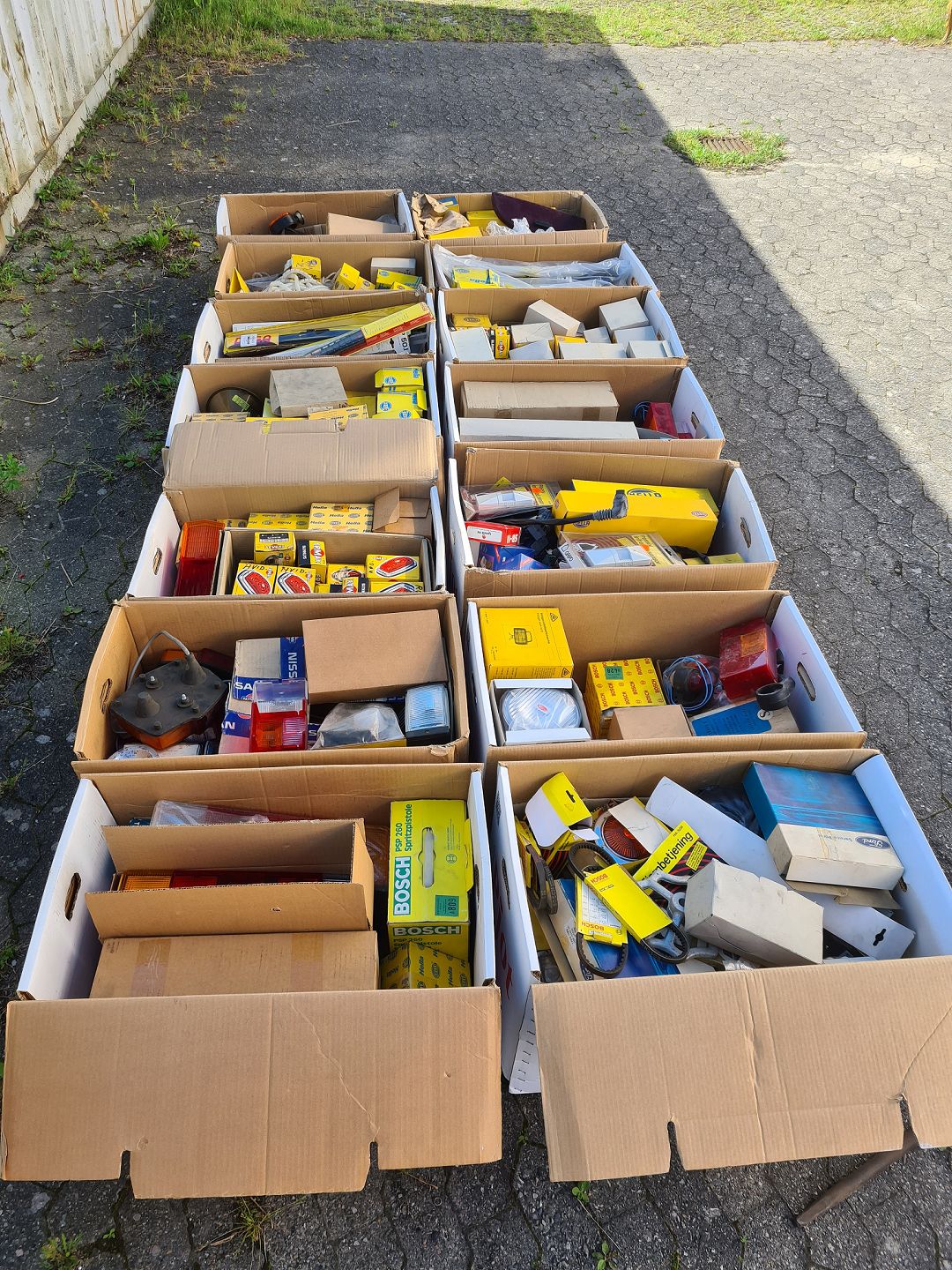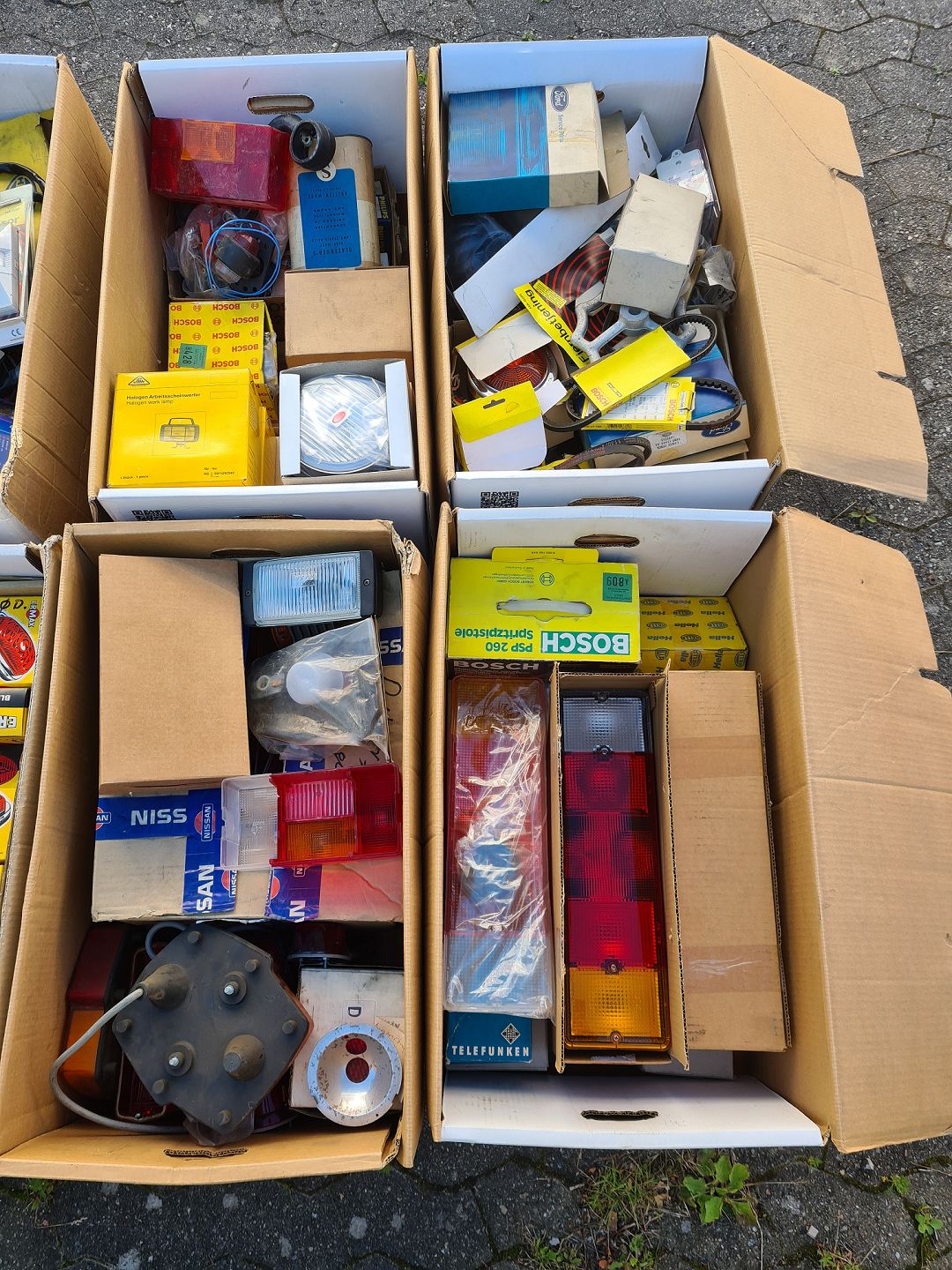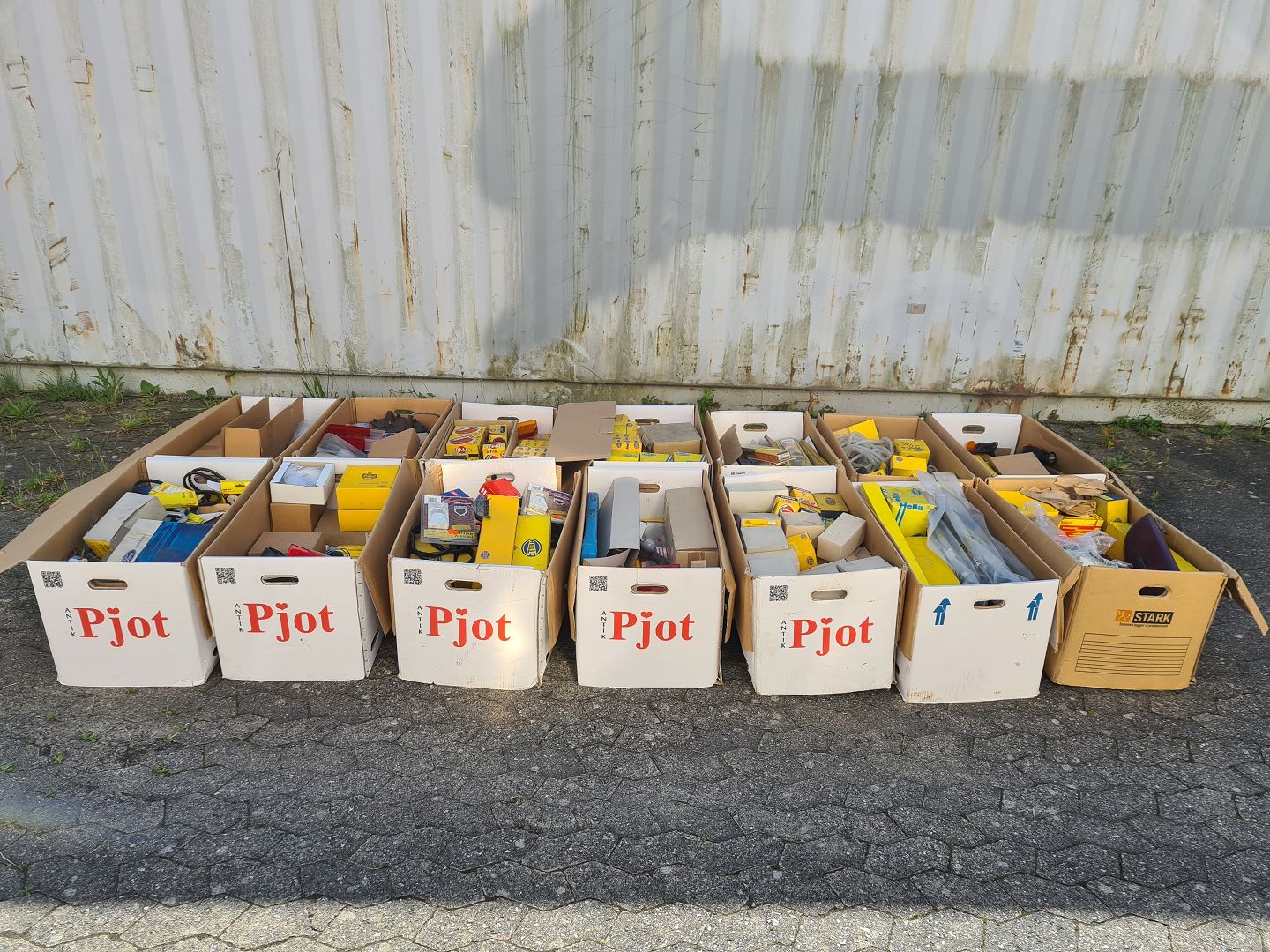 14 flyttekasser med div. auto-dele, fra 1960-2000erne.