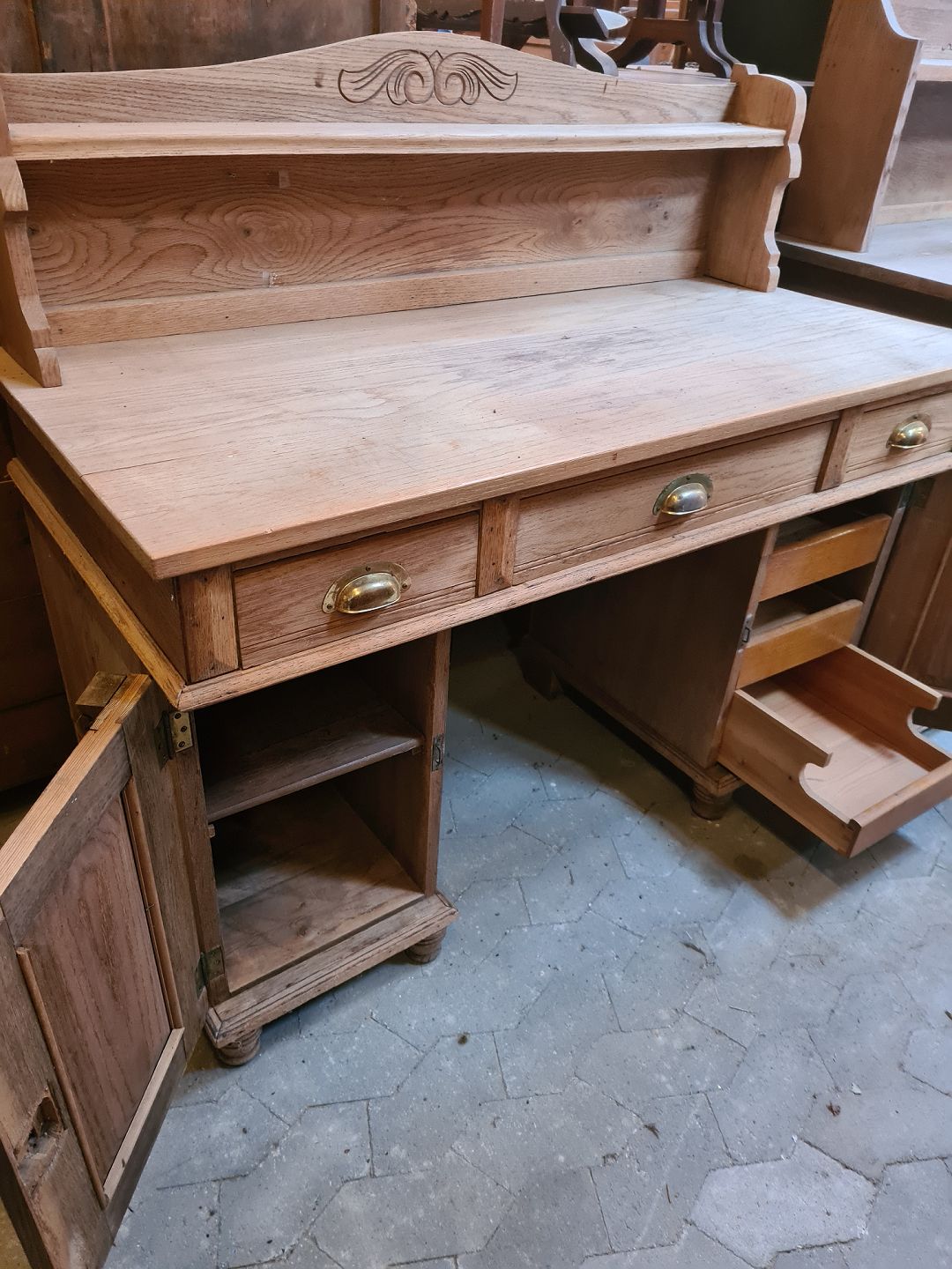 Skrivebord i fineret og massivt egetræ, fra 1910erne.