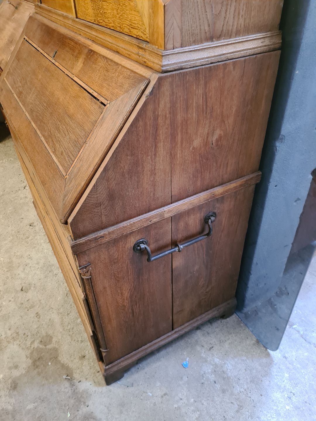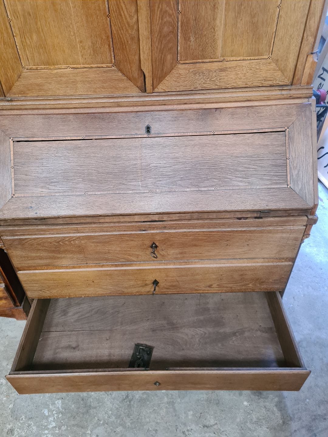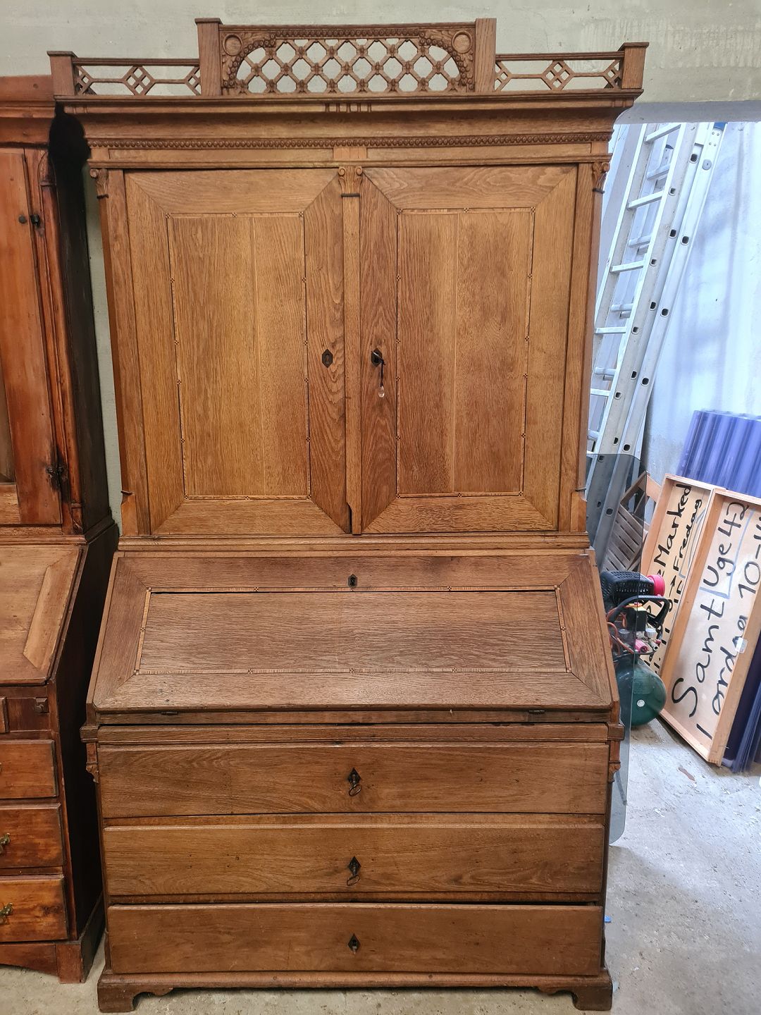 Chatol i massivt egetræ med overdel, fra 1900erne. Det har brugsspor og en defekt liste. Højde 217cm Bredde 123cm Dybde 56cm Emne nummer: 90828