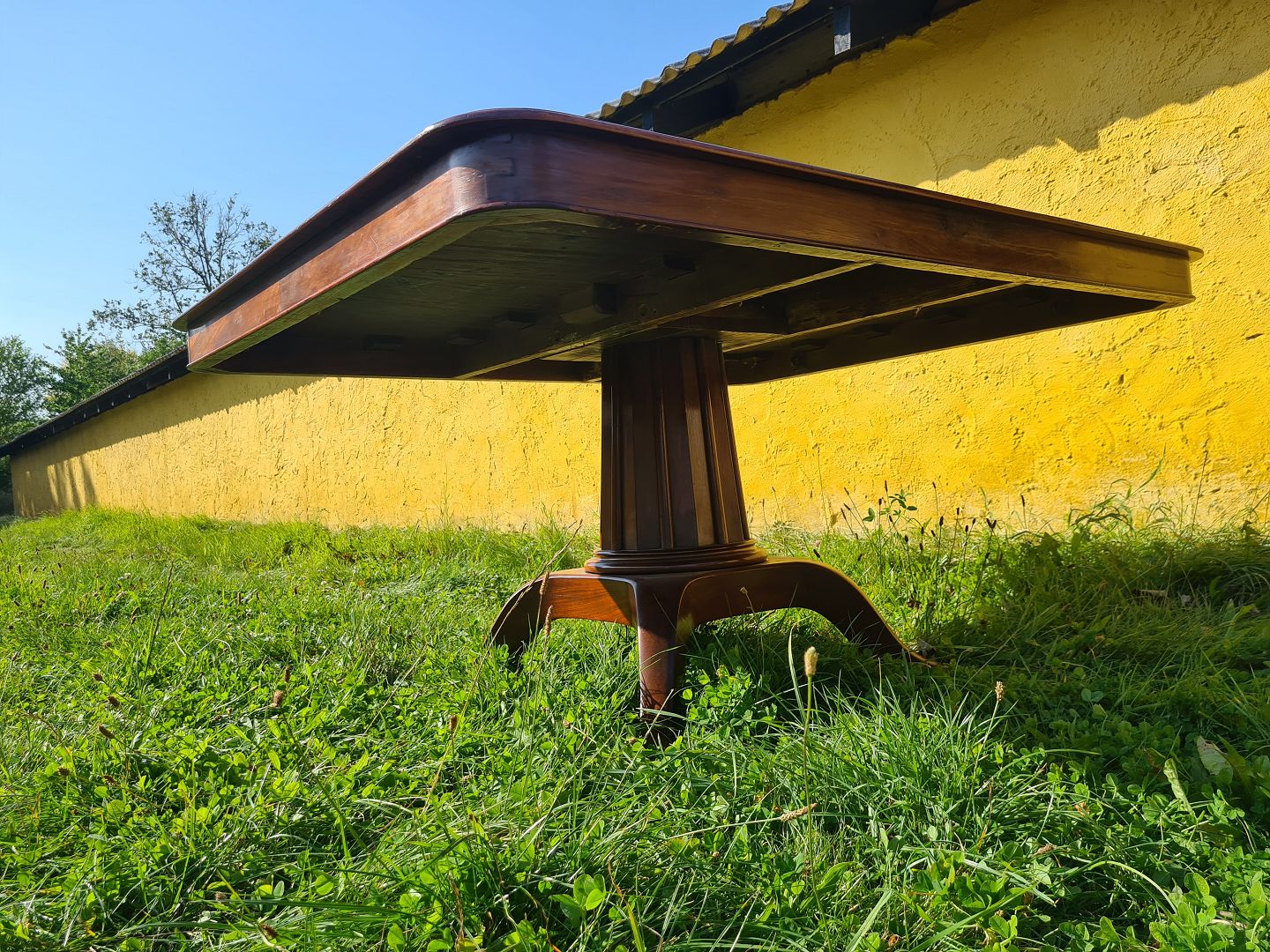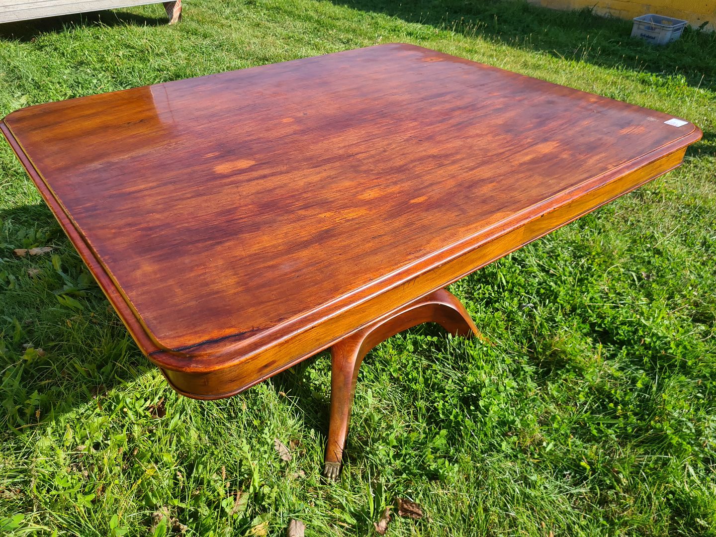 Stort spisebord fra 1920´erne i mahogni. Fremstår flot, velholdt og udmærket stabilt uden de store brugsspor. Højde 77 cm. Længde 148 cm. Bredde 124 cm. Emne nummer: 60610