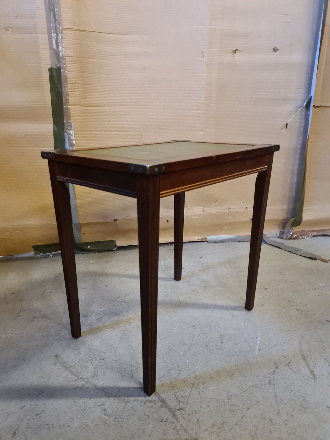 Lampebord i bøgetræ med kunstlæder indlæg, fra 1980erne. Det har små brugsspor. Højde 55cm Bredde 36cm Længde 53cm Emne nummer: 75882