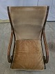Lænestol i mahogni med velourbetræk, fra 1980erne.