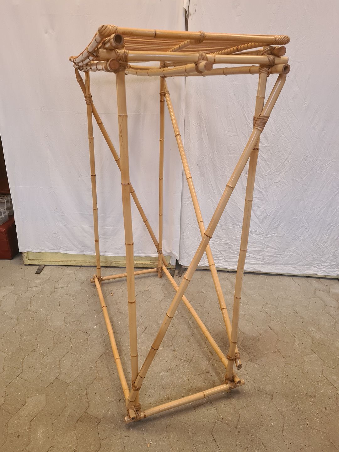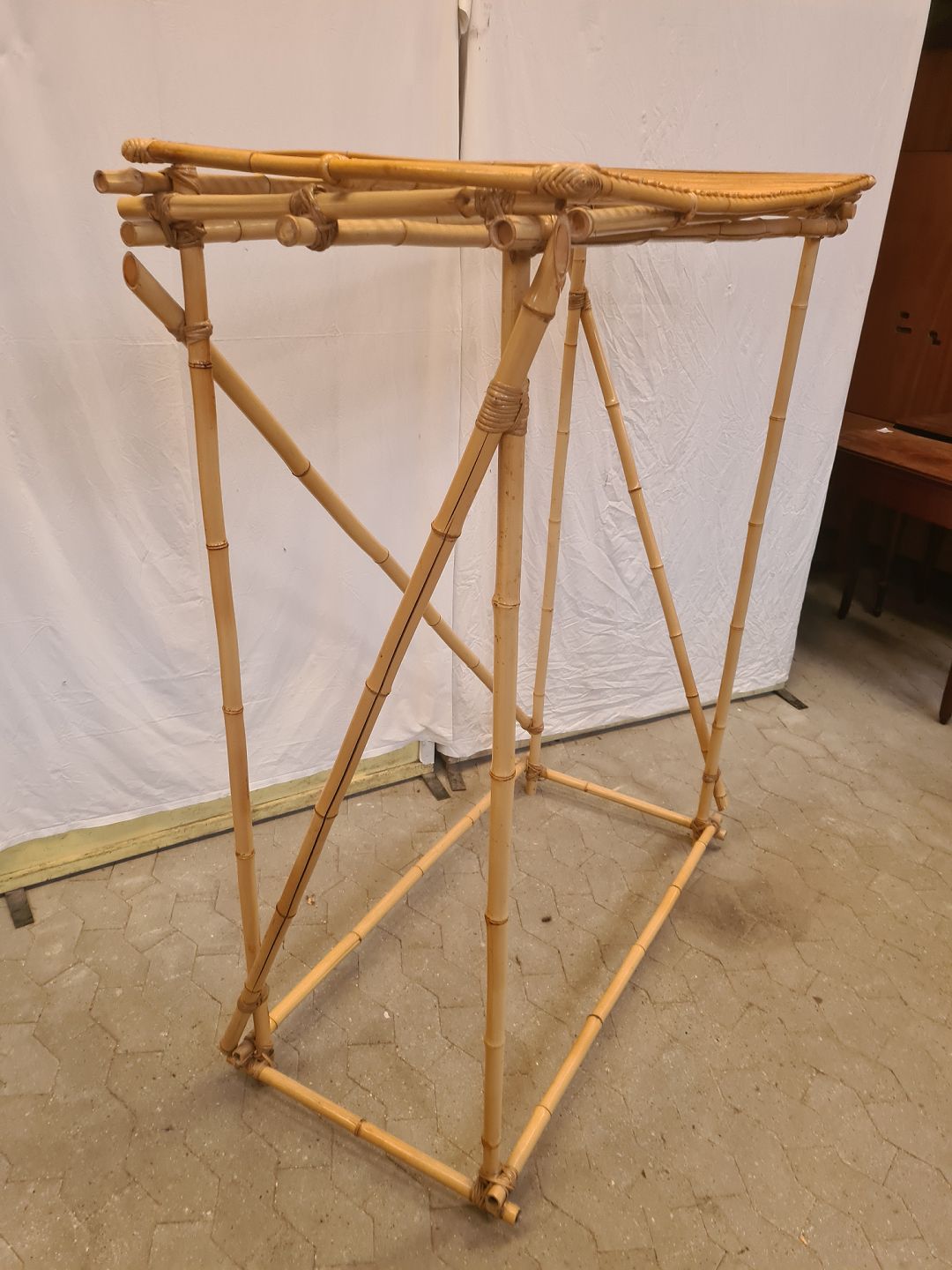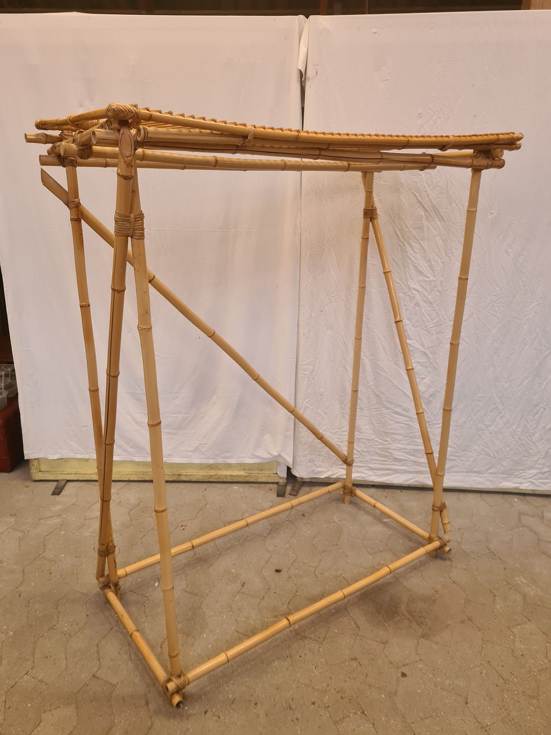 Tøjstativ i bambus til tøjbøjler og med hattehylde, fra 1990erne.