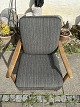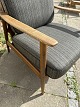 Dansk møbelproducent lænestol med armlæn af massiv eg samt stel af bejset bøg og hynder betrukket med uld stof.