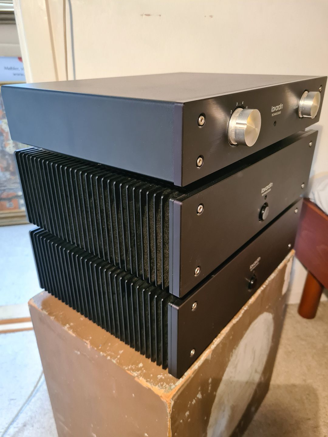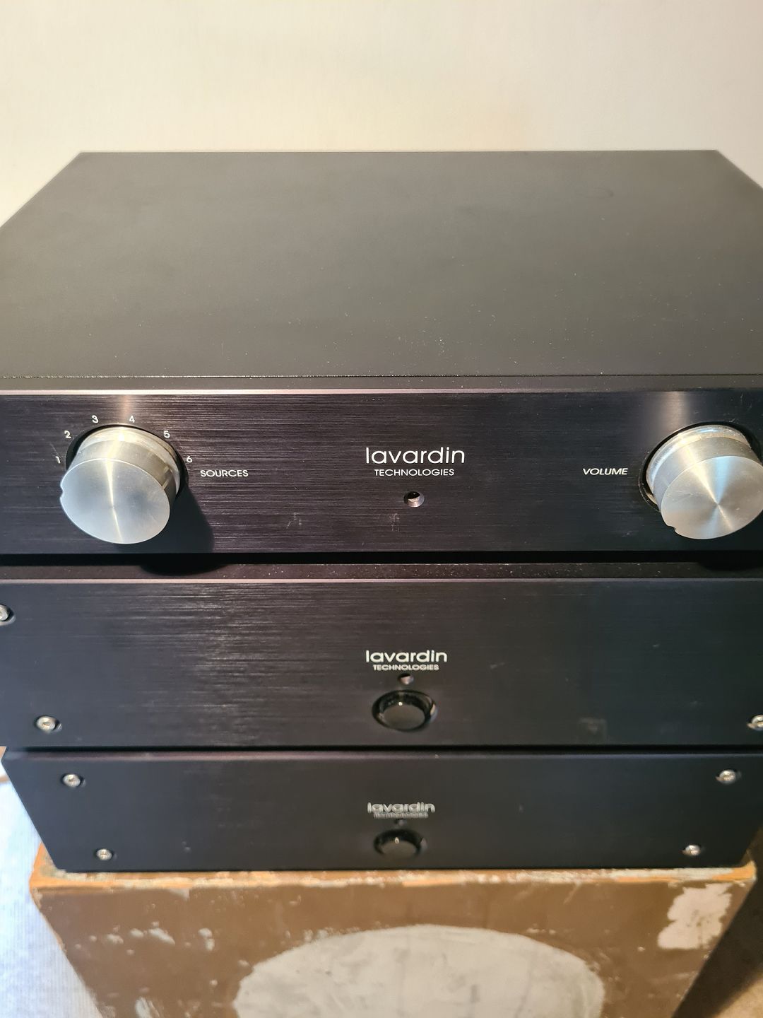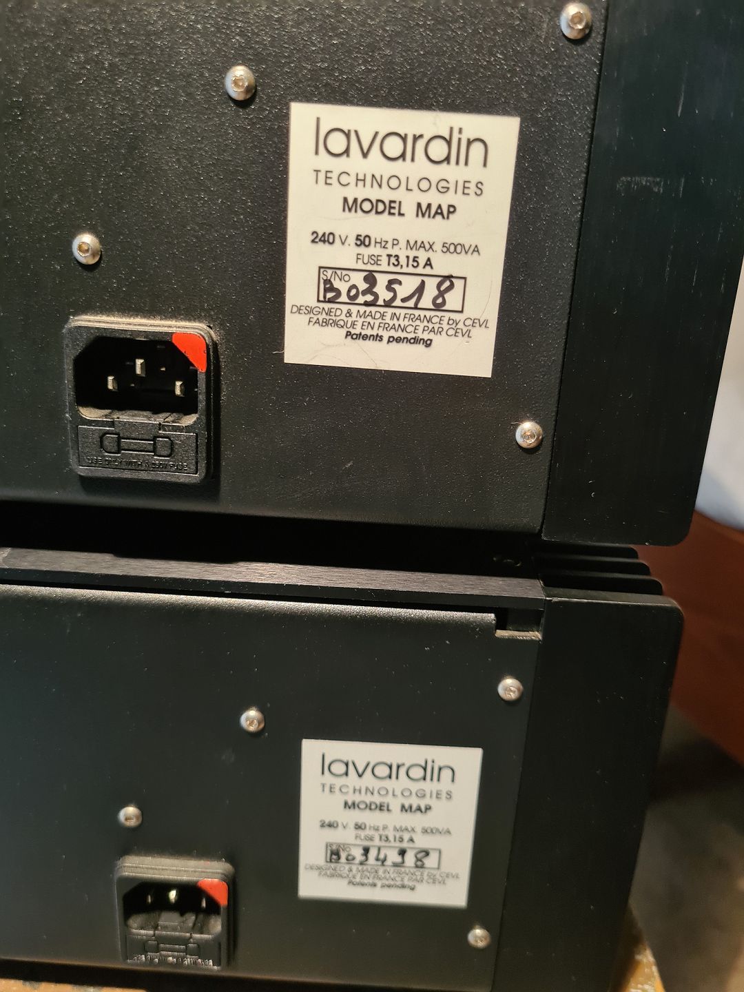 Forstærkersæt fra franske Lavardin Technologies bestående af 2 stk. mono effektforstærkere model MAP og forforstærker model C 62. Sættet er brugt sammen og omkring 10 år gammelt. Virker som det skal. Dog synes en anelse knasen når volumen opereres. Medføger strømførende kabler og originalt emballage til den ene MAP og C 62.